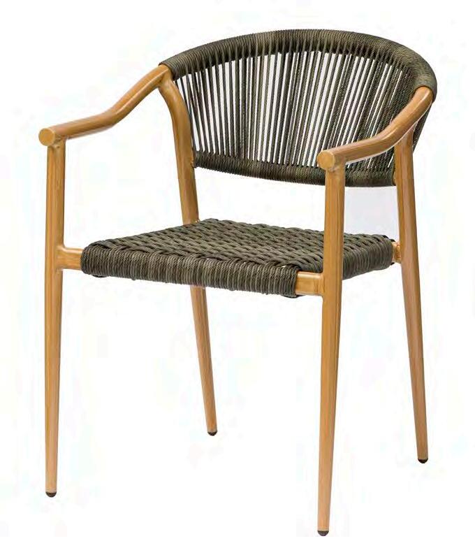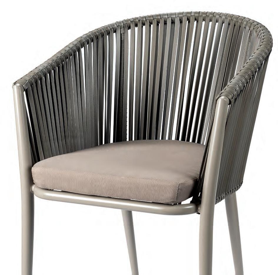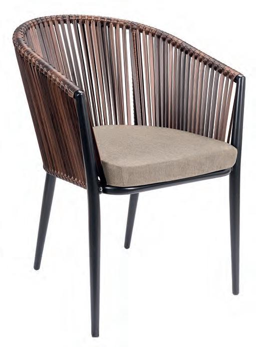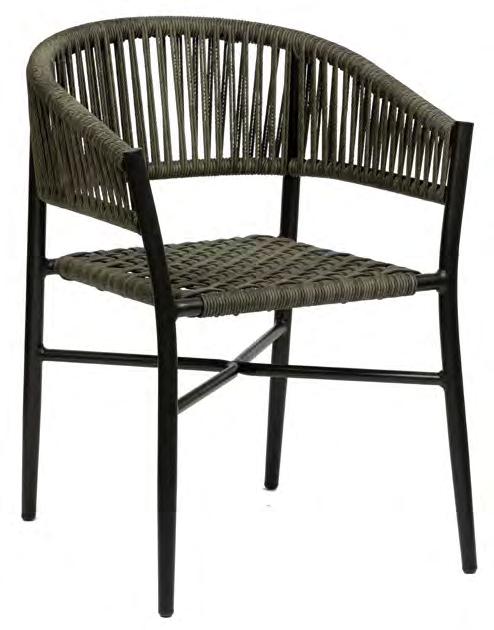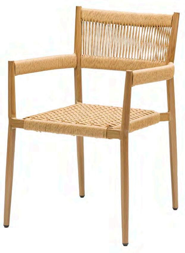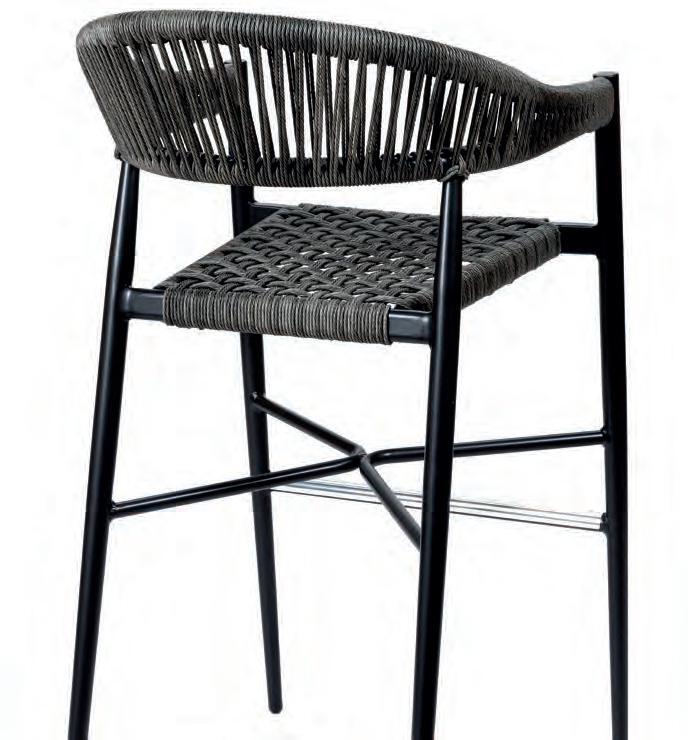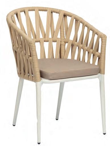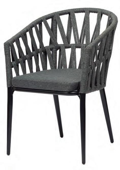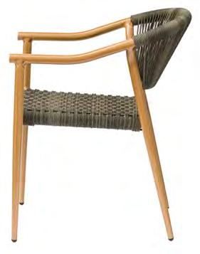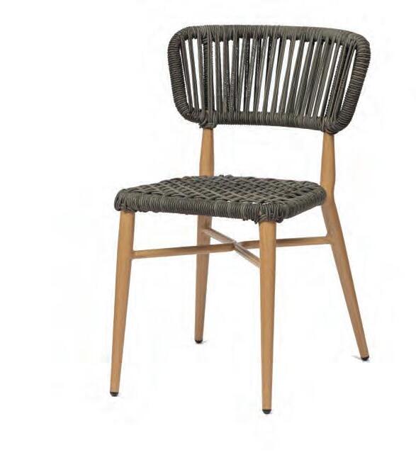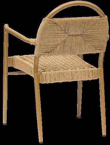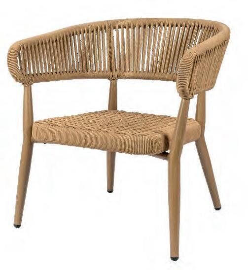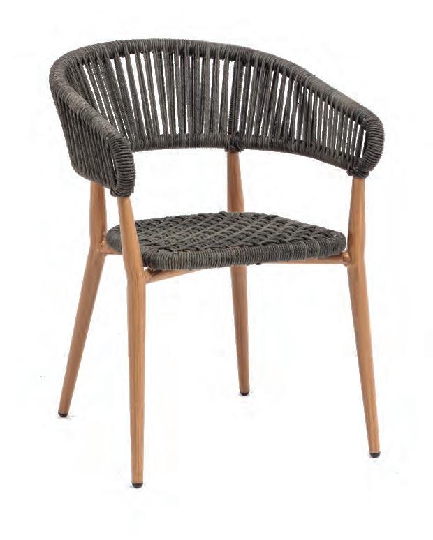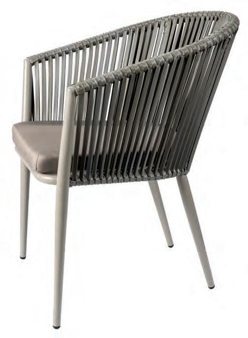 Comodidad y elegancia llevando el estilo Rope a nuevos diseños en combinación con textilene en una estructura resistente, ligera y apilable.