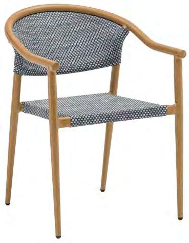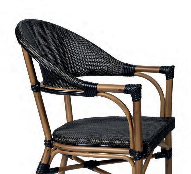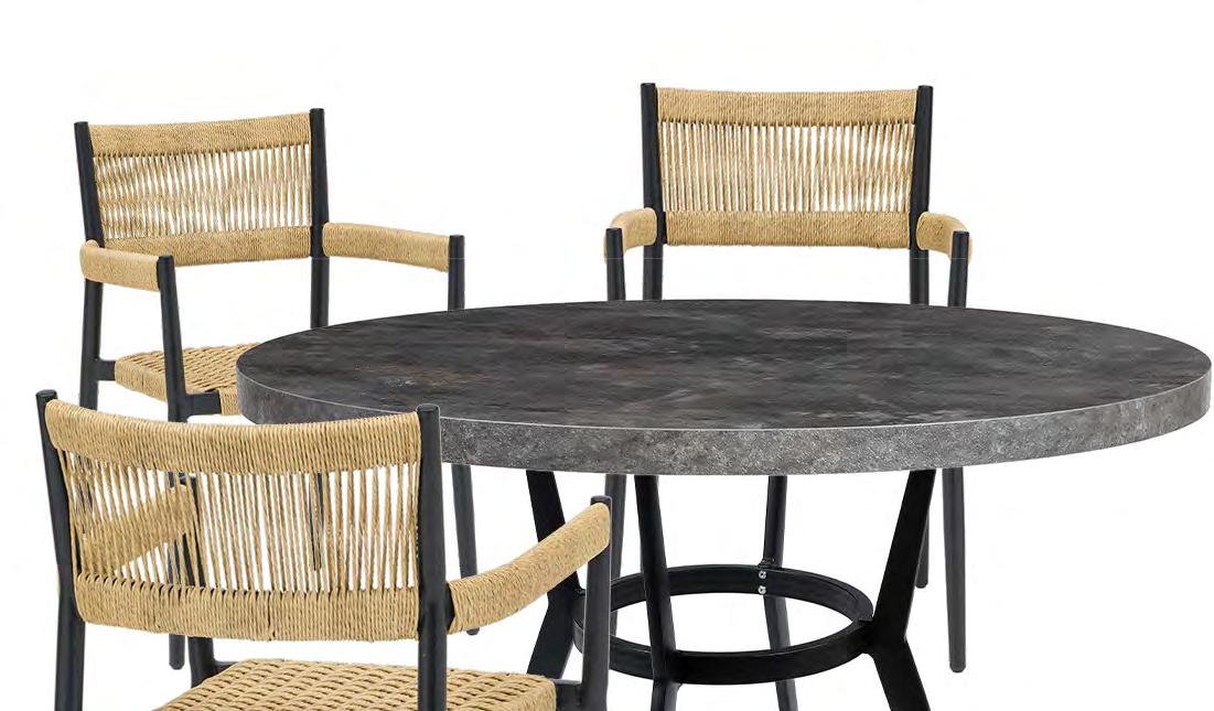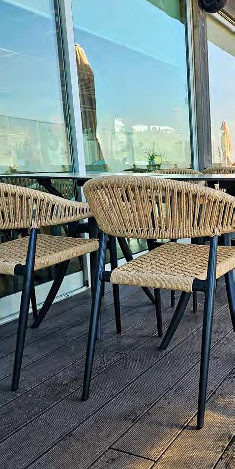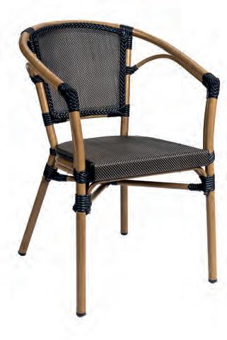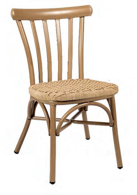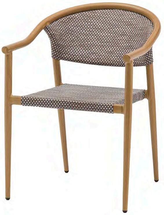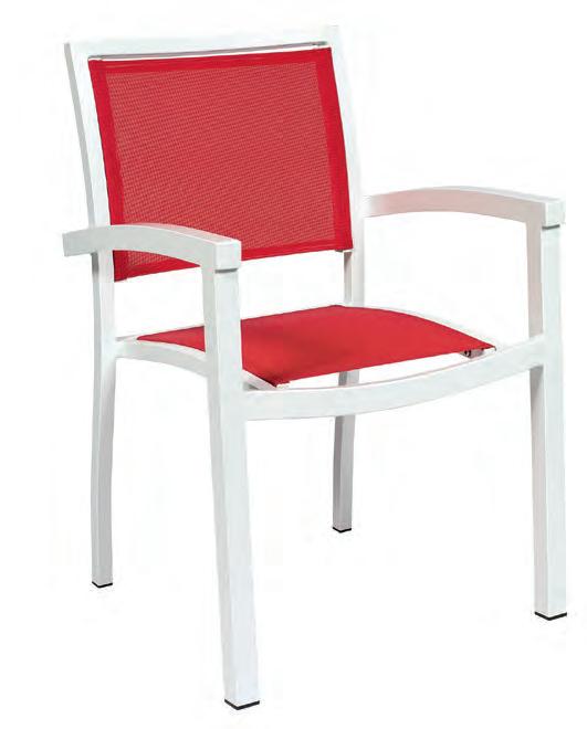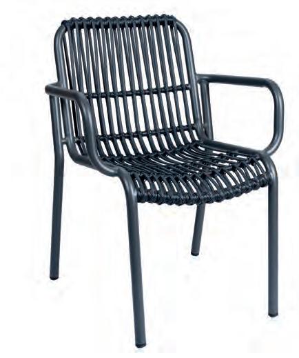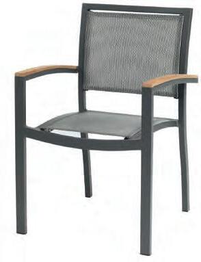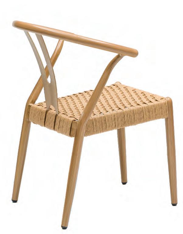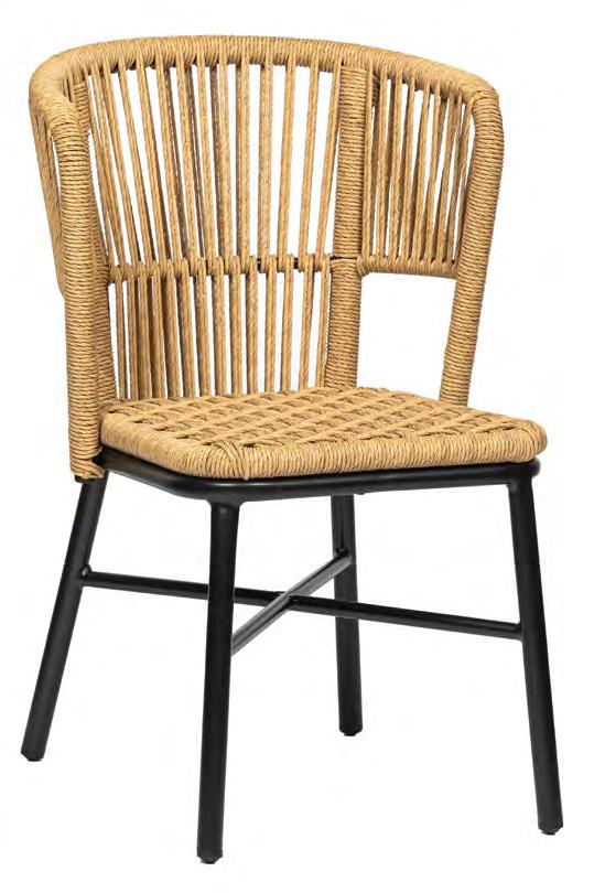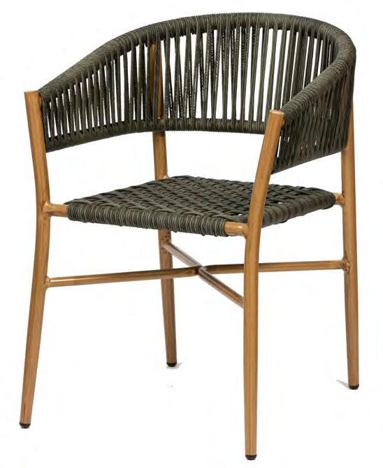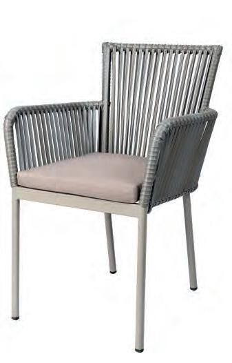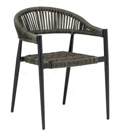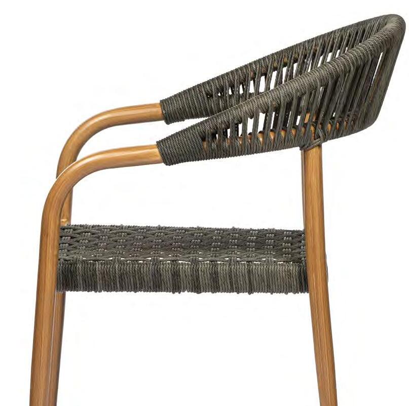 Comodidad y elegancia llevando el estilo Rope a nuevos diseños en combinación con textilene en una estructura resistente, ligera y apilable.