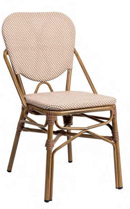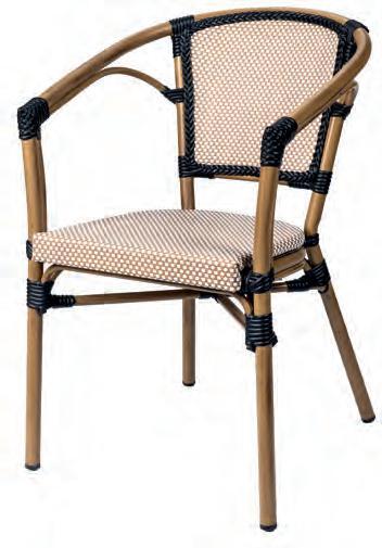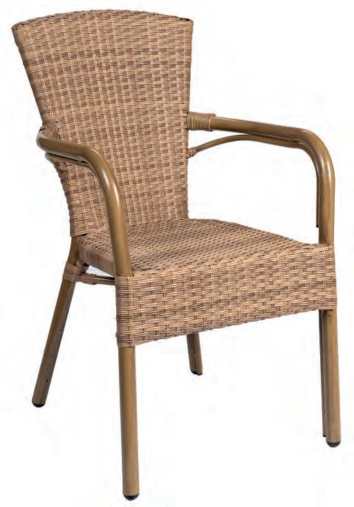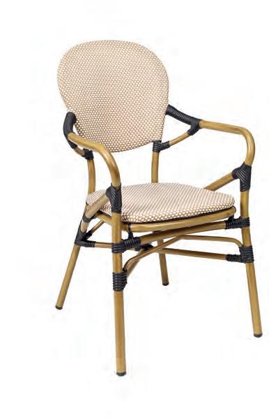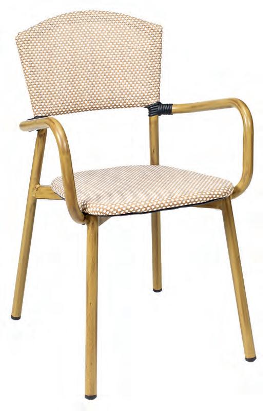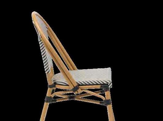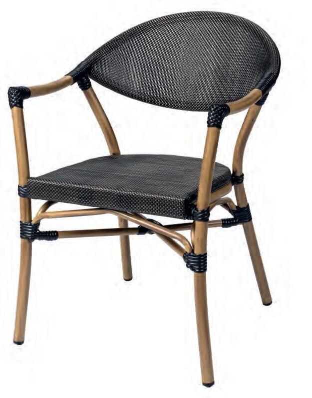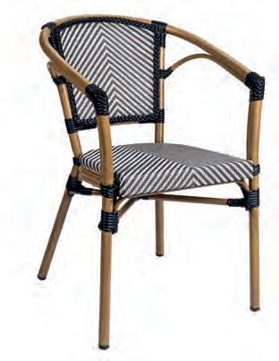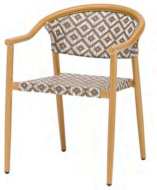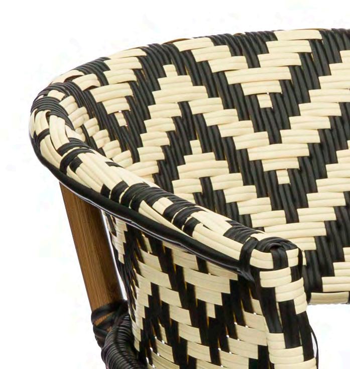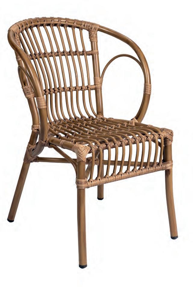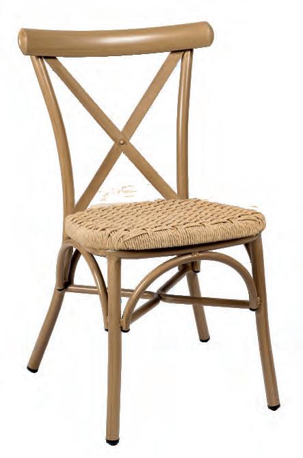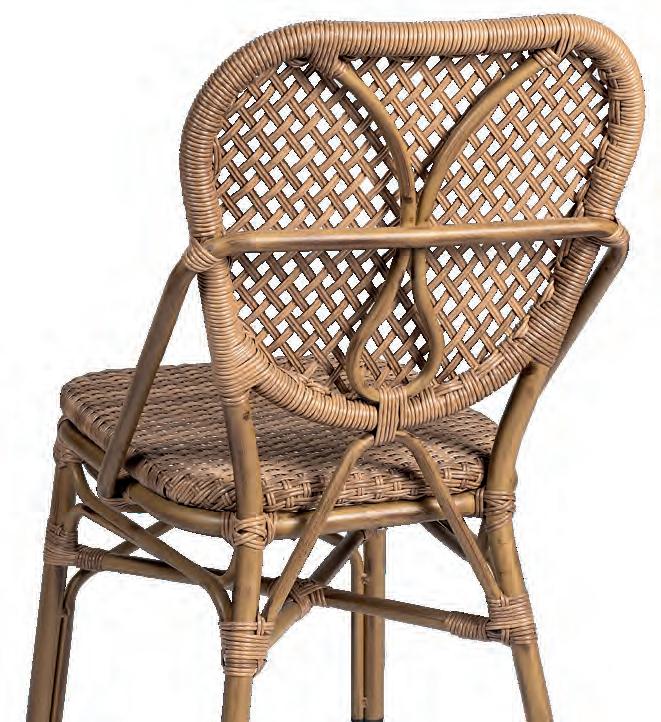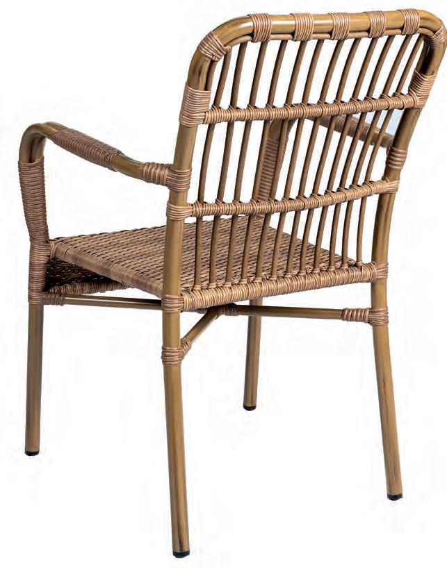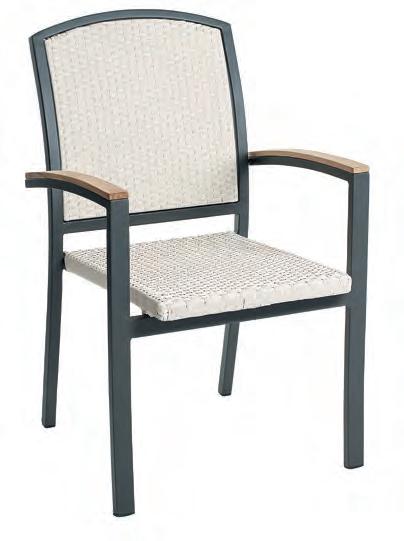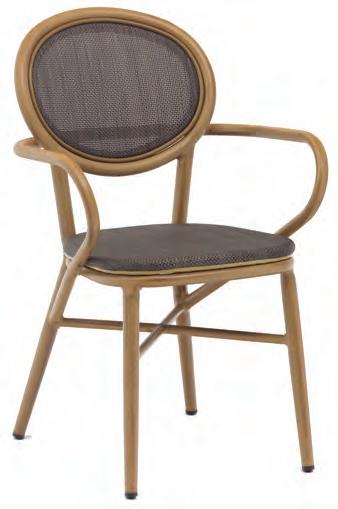Comodidad y elegancia llevando el estilo Rope a nuevos diseños en combinación con textilene en una estructura resistente, ligera y apilable.