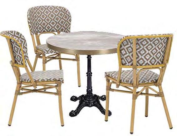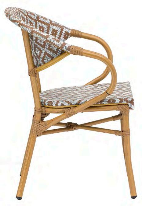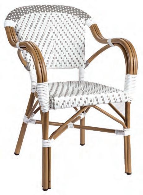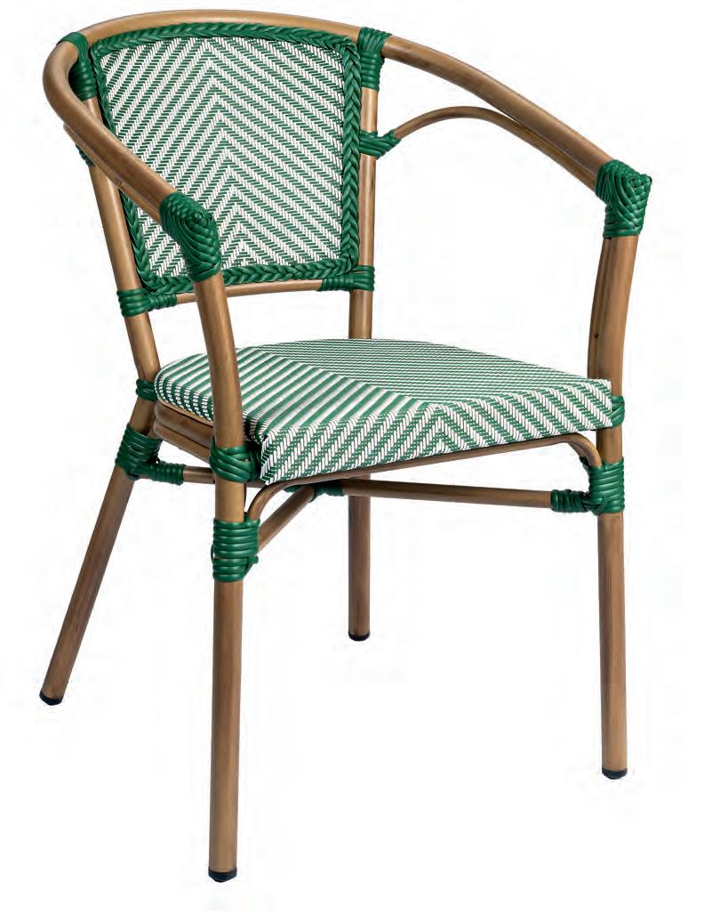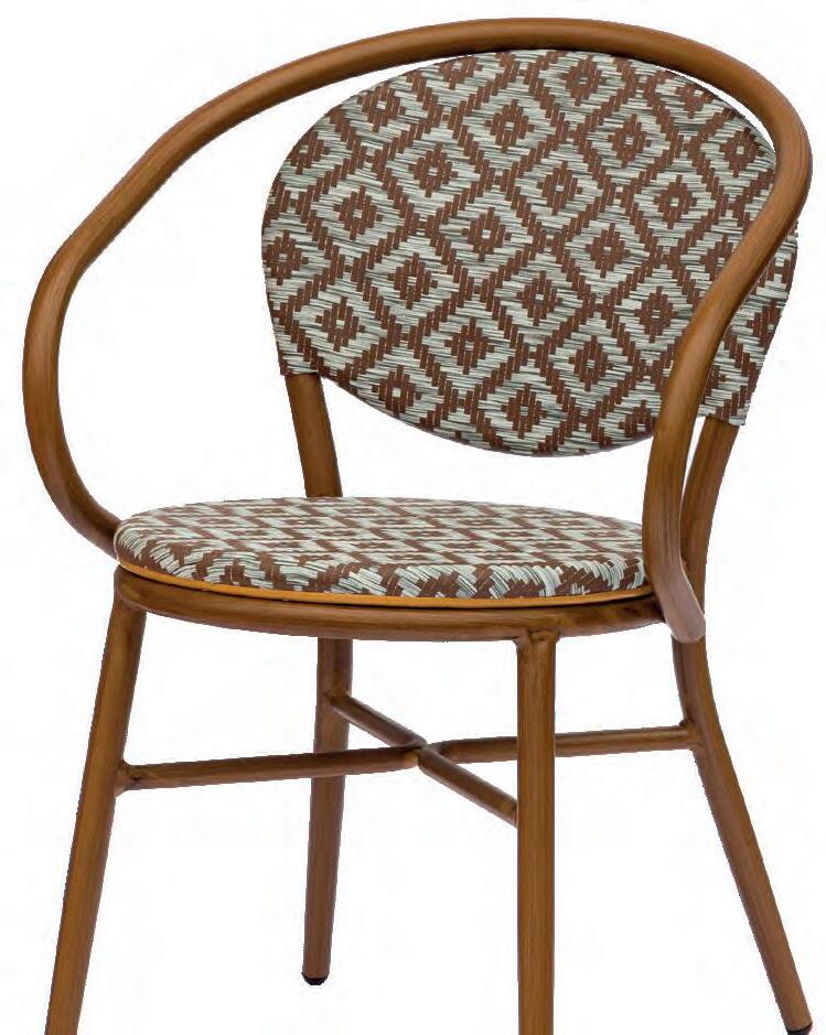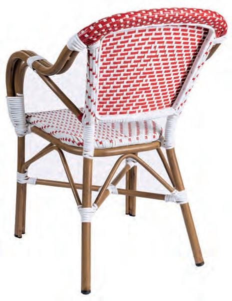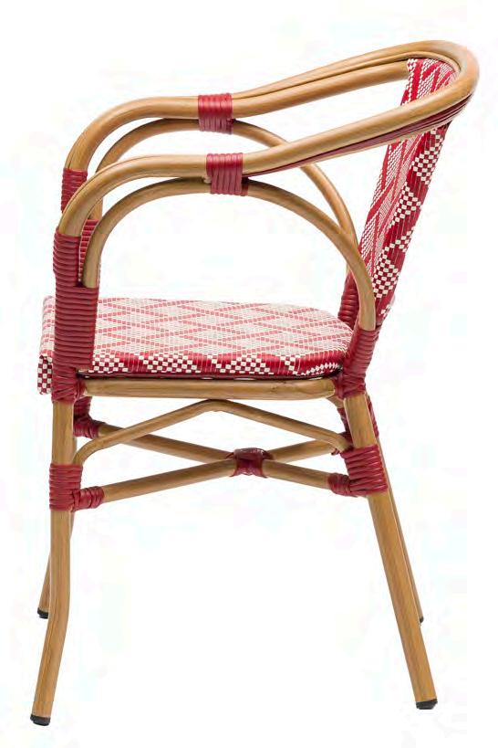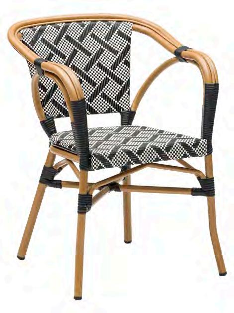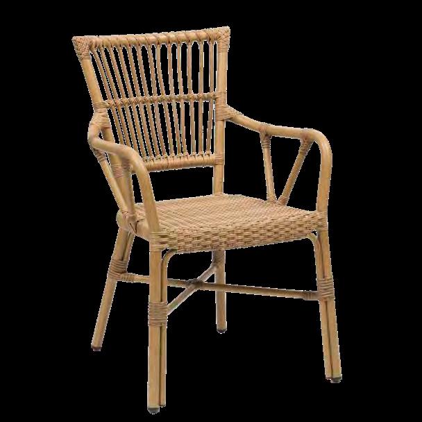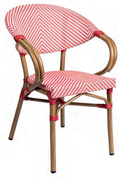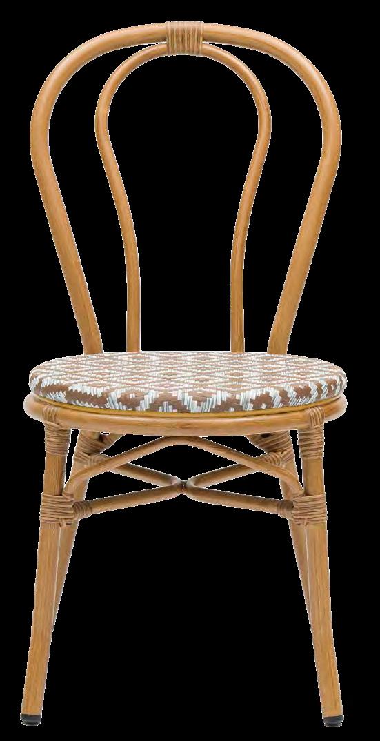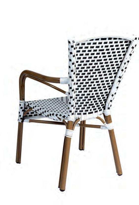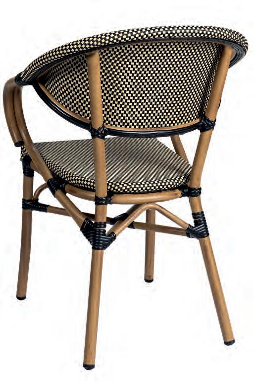 Comodidad y elegancia llevando el estilo Rope a nuevos diseños en combinación con textilene en una estructura resistente, ligera y apilable.