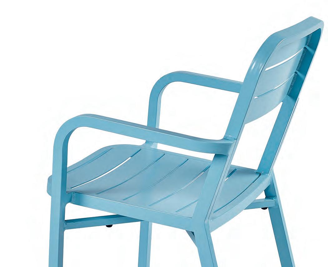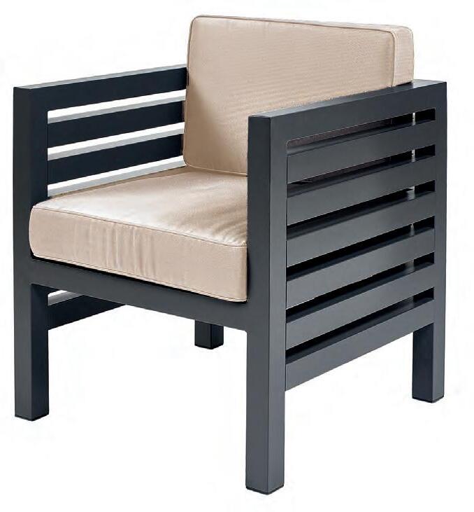 Aires andaluces para esta Novedad 2025. Formato silla y sillón para aportar versatilidad, realizados en aluminio y dos acabados diferentes para elegir o combinar en exterior o interior.