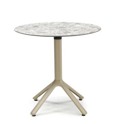 Three coffee tables, to be used individually or in combination with the chairs, symbolize with their shapes continuity, cyclicality, and therefore the relationship with time, seasons, everyday life, space. The green soul of the tables is expressed in the black cork top, a completely eco-friendly, natural, and recycled material, perfect for both outdoor and indoor spaces.