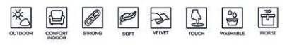 Composizione: 65% Olyna Outdoor, 35% Poliestere Antibatterica, antimuffa, riciclabile, antiallergica, lavabile a 30°, resistente al cloro, resistente ai raggi solari. Composition: 65% Olyna Outdoor, 35%Polyester Bacteria resistant, Anti-mould, Washable, Recyclable, Antiallergic, washable at 30°, Chlorine Resistant, Outdoor.