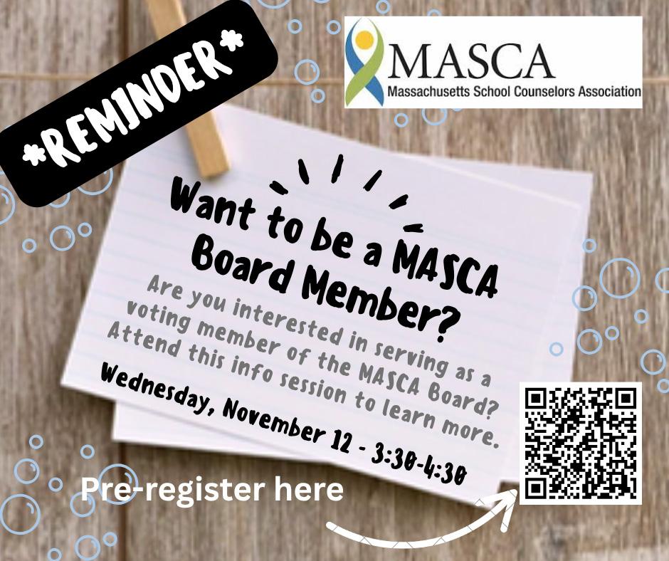The vision of MASCA is to equip school counseling professionals with the knowledge and skills needed to implement a comprehensive school counseling program in their school community. Through an equitable lens, we advocate that all K-12 Massachusetts students have access to a school counselor and the opportunity to become their best selves in school, their personal lives, and their communities.