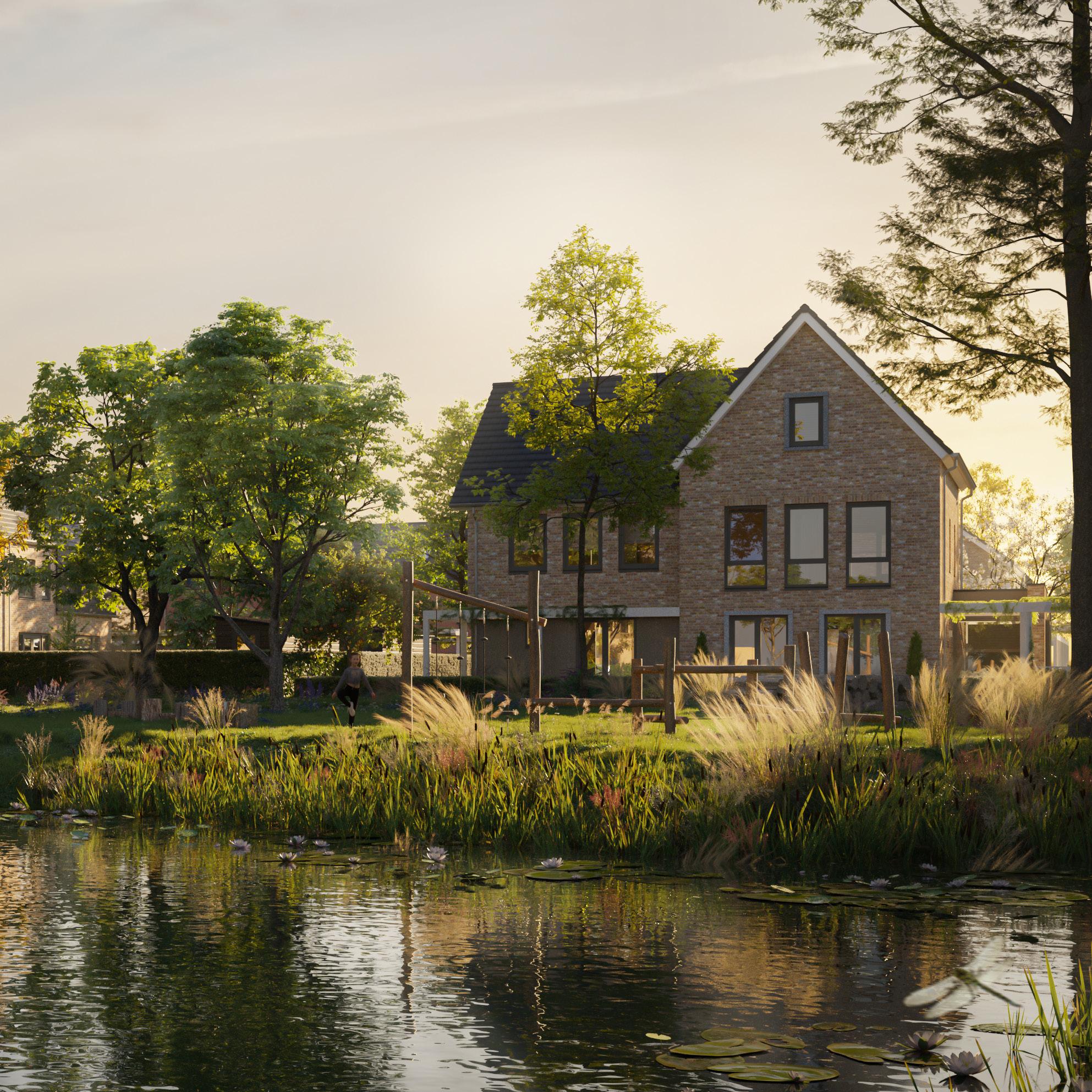 Hier woon je echt in ’t groen. Meer dan de helft van het project biedt namelijk ruimte aan groen en water. De levendige beplanting, waterrijke zones, natuurlijke paden en afwisselende bebouwing bieden een gemoedelijke en gevarieerde woonomgeving. Waar je heerlijk kunt wandelen, waar de kinderen uit de buurt zorgeloos met elkaar kunnen spelen, waar je andere mensen ontmoet en waar je écht thuiskomt.