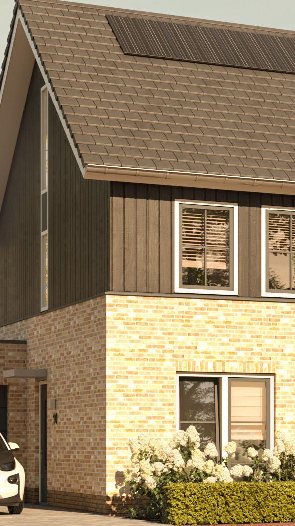 Twee hoekwoningen springen extra in het oog dankzij het verhoogde dak. Bovendien bieden de hoekwoningen meer eigen buitenruimte. De woningen hebben een royale woonkamer annex leefkeuken, drie slaapkamers en een zolder met ruimte voor een logeerkamer of werkplek. De duurzame installaties en bouwmethoden zorgen bovendien voor een zeer aangenaam wooncomfort.