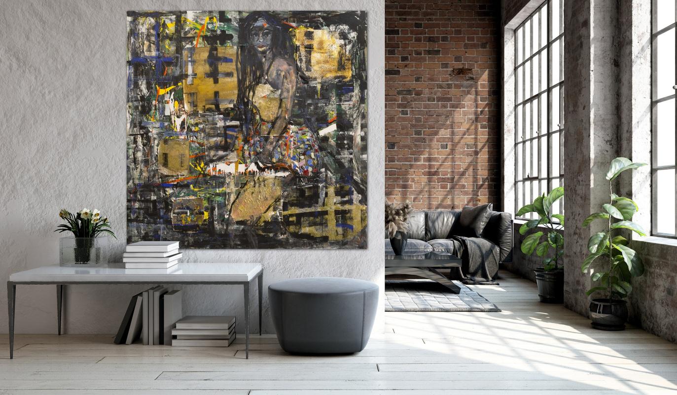 By Haleh Mashian Mixed media , framed 45 X 75 in