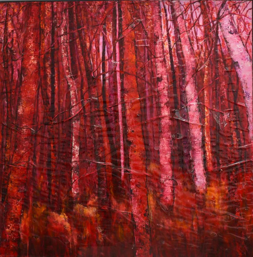 SCARLET'S SERENADE MIXED MEDIA ON CANVAS 36 X 36 IN (92 X 92 CM)