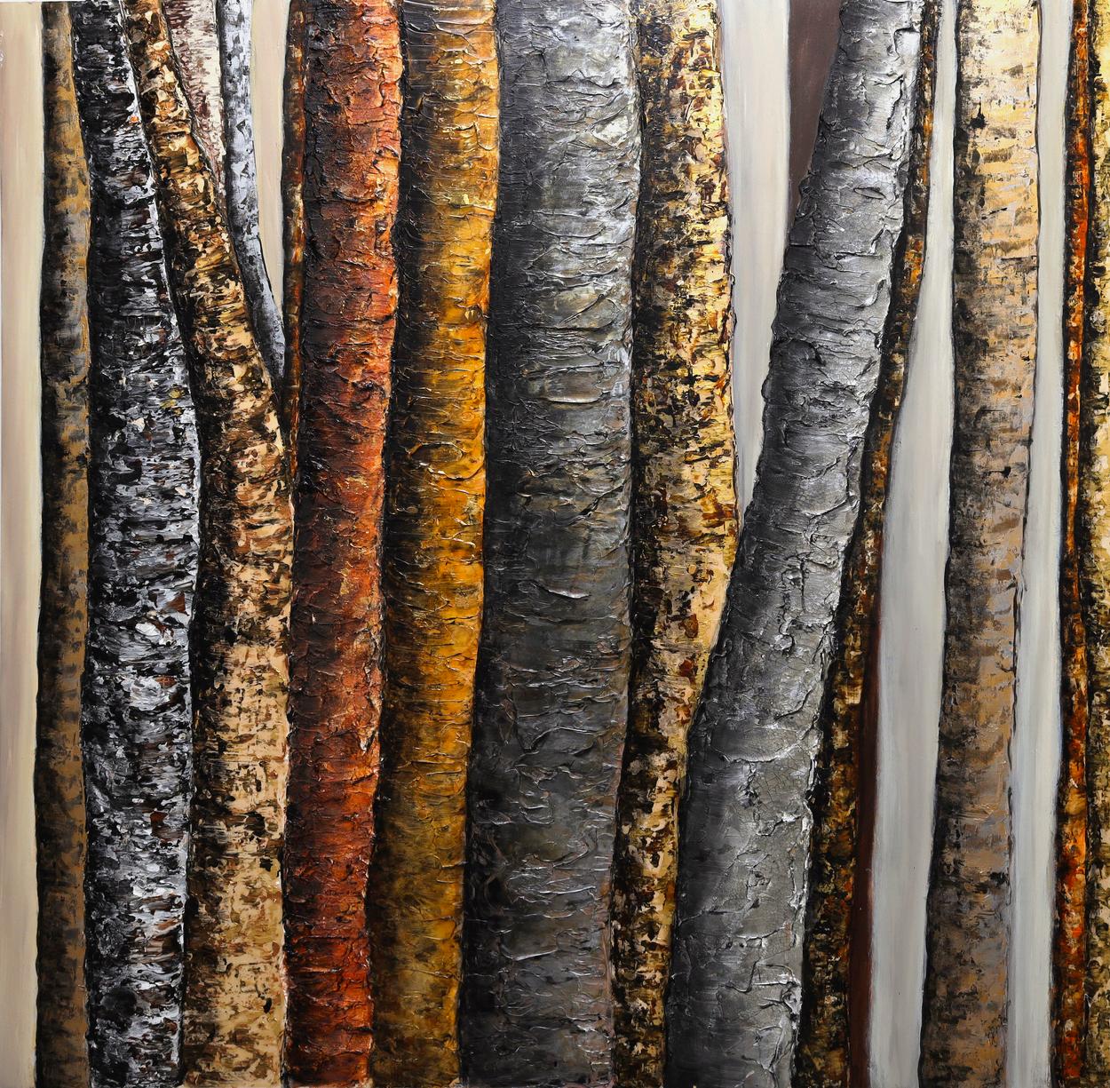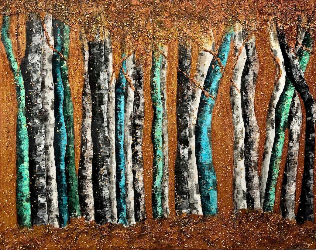 “As a painter devoted to capturing the essence of trees, I find myself endlessly inspired by their graceful presence, the interplay of light and shadow, the texture of their bark and their vibrant hues of foliage” “I seek to capture the resilience and strength that emanate from their silent presence, the whispers of their ancient secrets, reminding viewers of the inherent power within us all.”