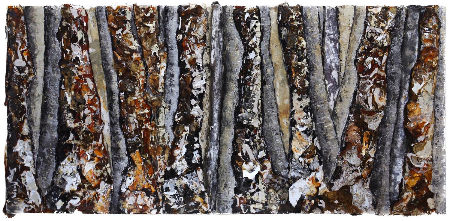 EMBER ECHOES MIXED MEDIA ON CANVAS 23 X 48 IN EACH (55 X 122 CM)