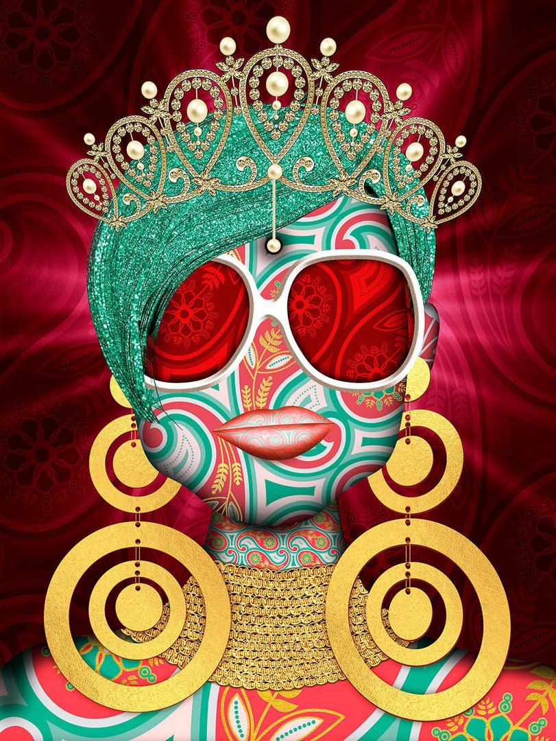 JEWELED RED TEARS Mixed media on wood panel