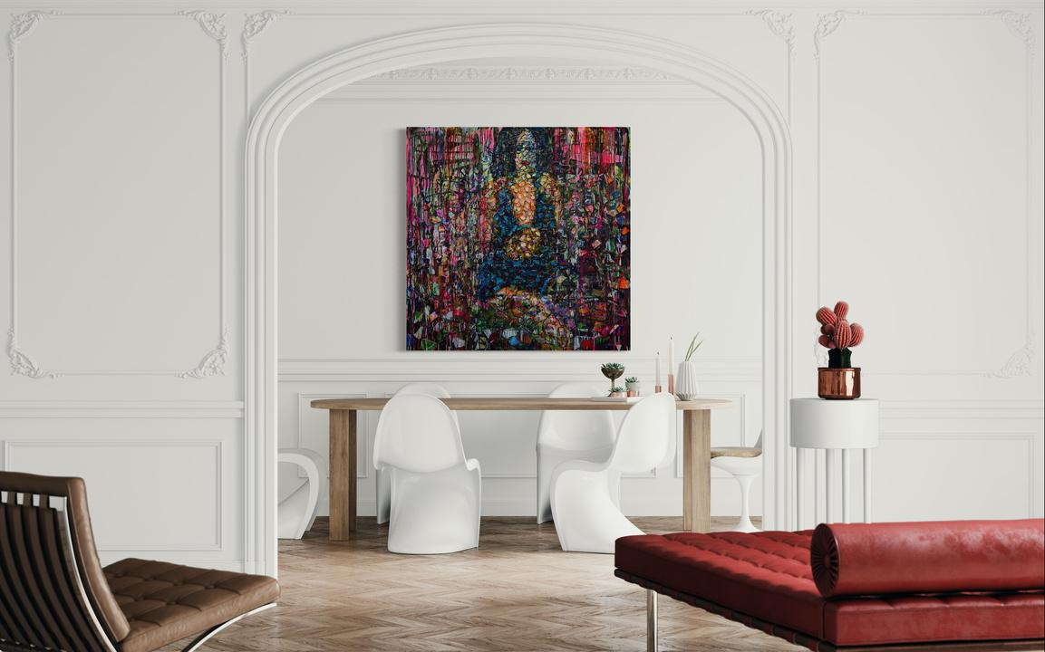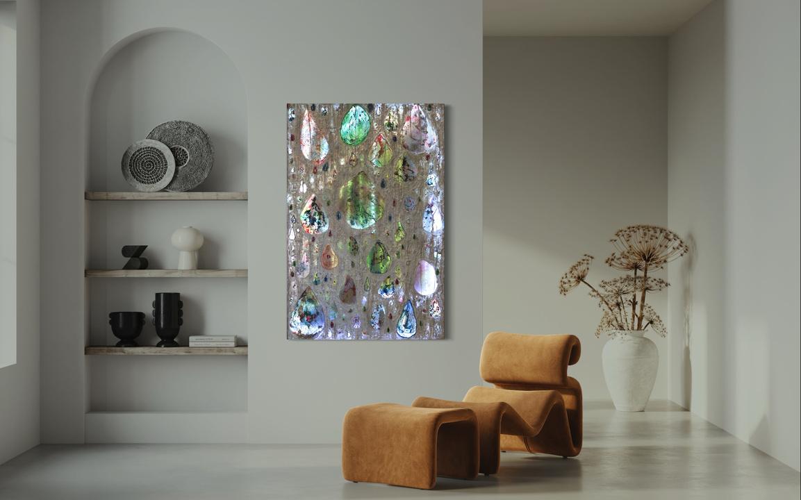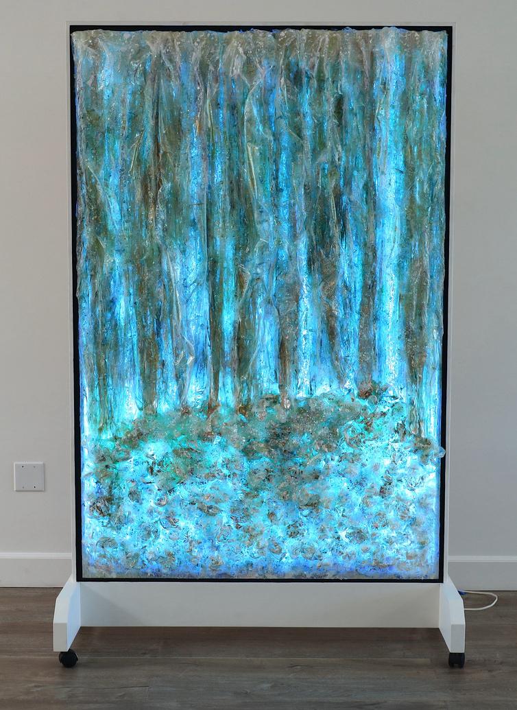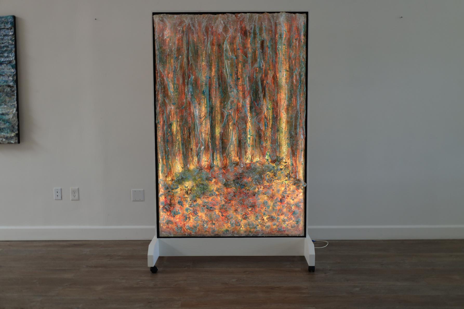 Mixed media on wood panel with LED backlighting 72" X 72"