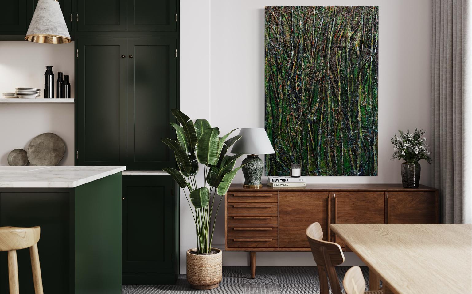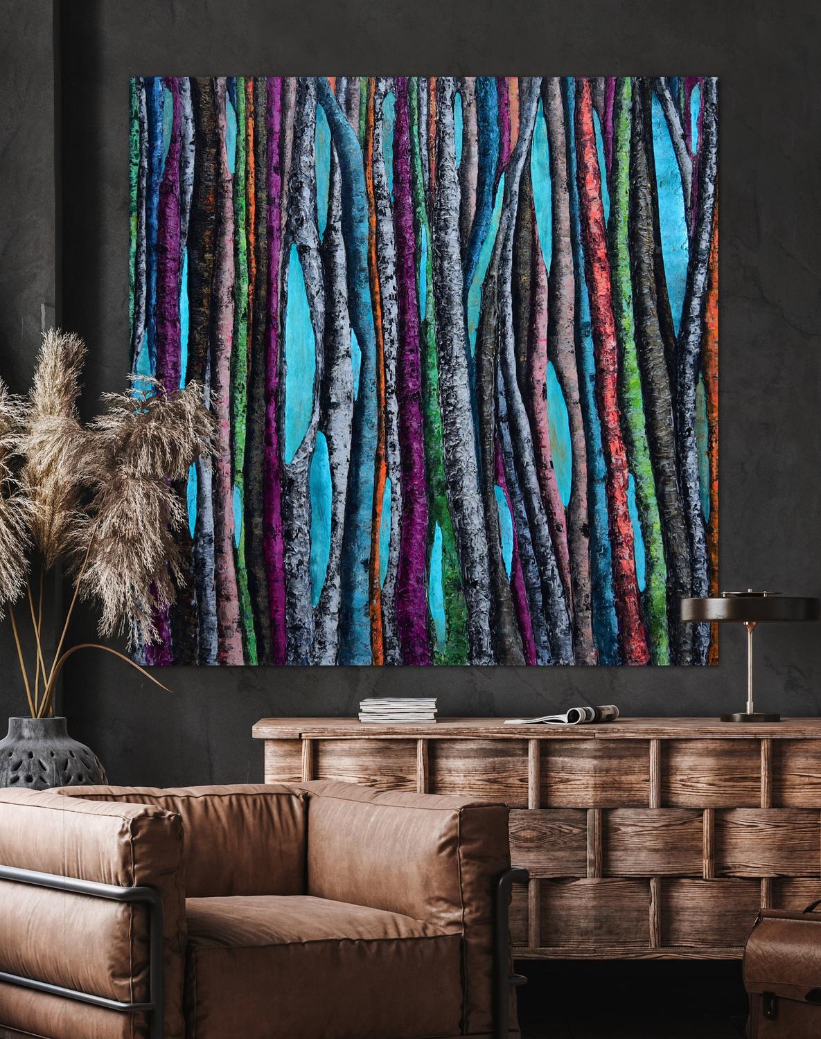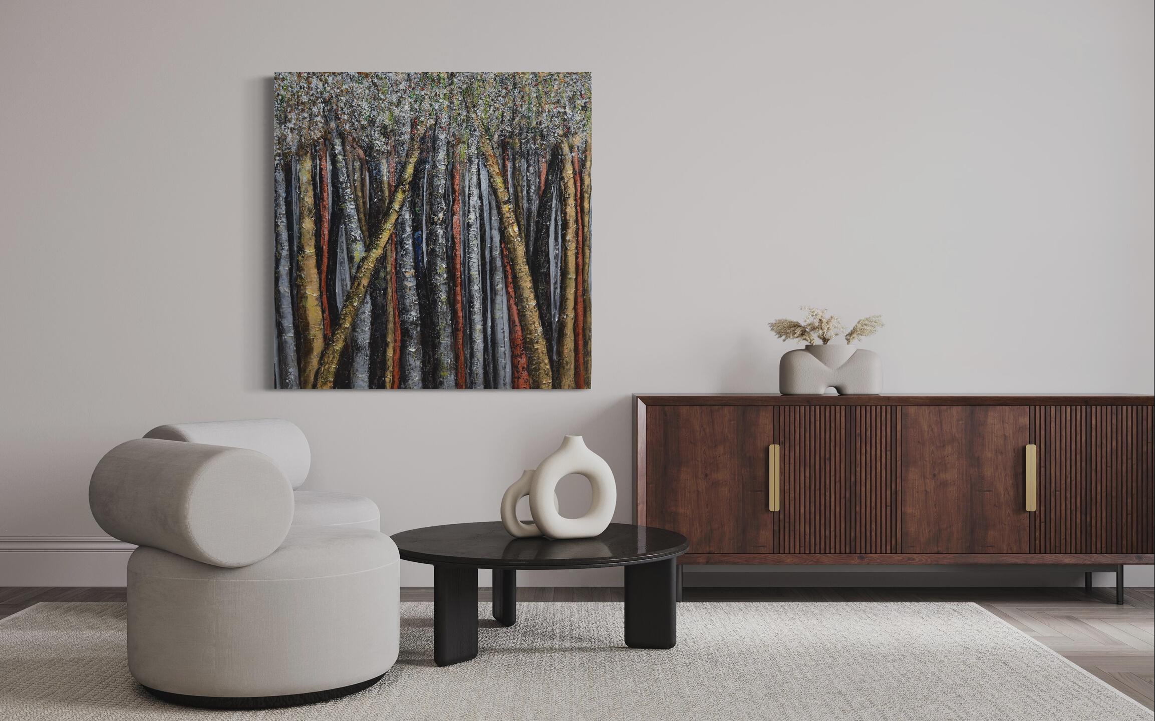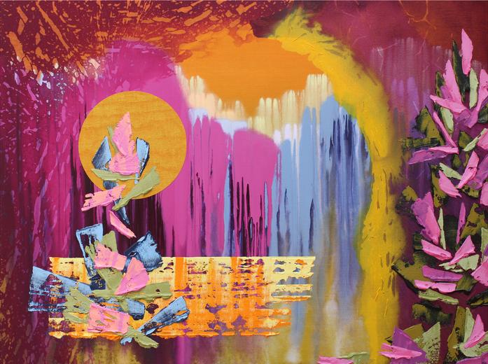 As a painter and creative expressionist, Mashian's abstract works reveal her appreciation of color theory, compositional form and the study of positive and negative space. Working in mixed media and using a variety of techniques from collage to impasto, a repeated layering and application of paint, Mashian creates a range of dynamic pieces in various sizes.