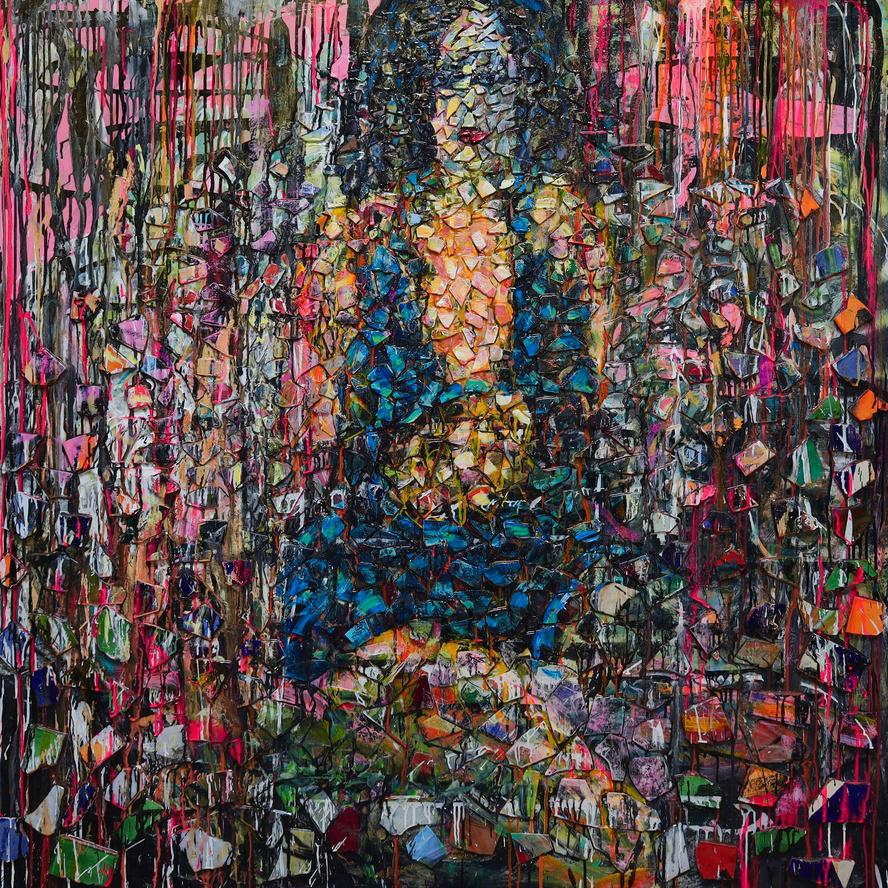Acrylic, spray paint, Swarovski crystals on canvas 52" X 58"