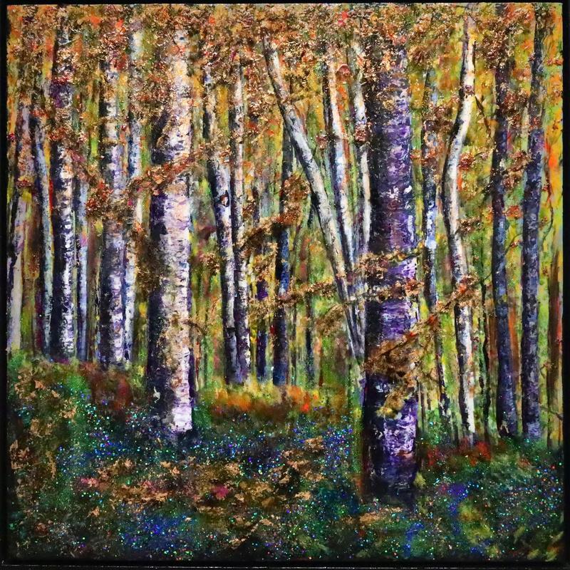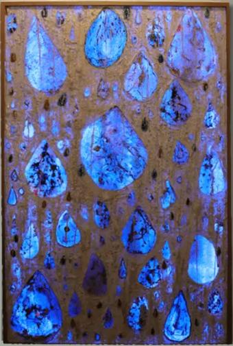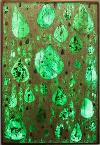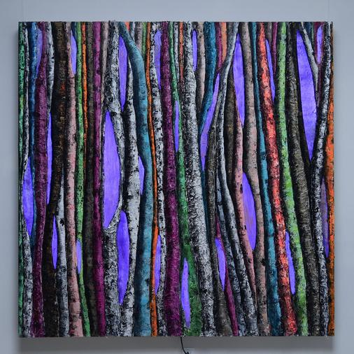 By Haleh Mashian 48" X 48" Mixed media on canvas with LED backlighting