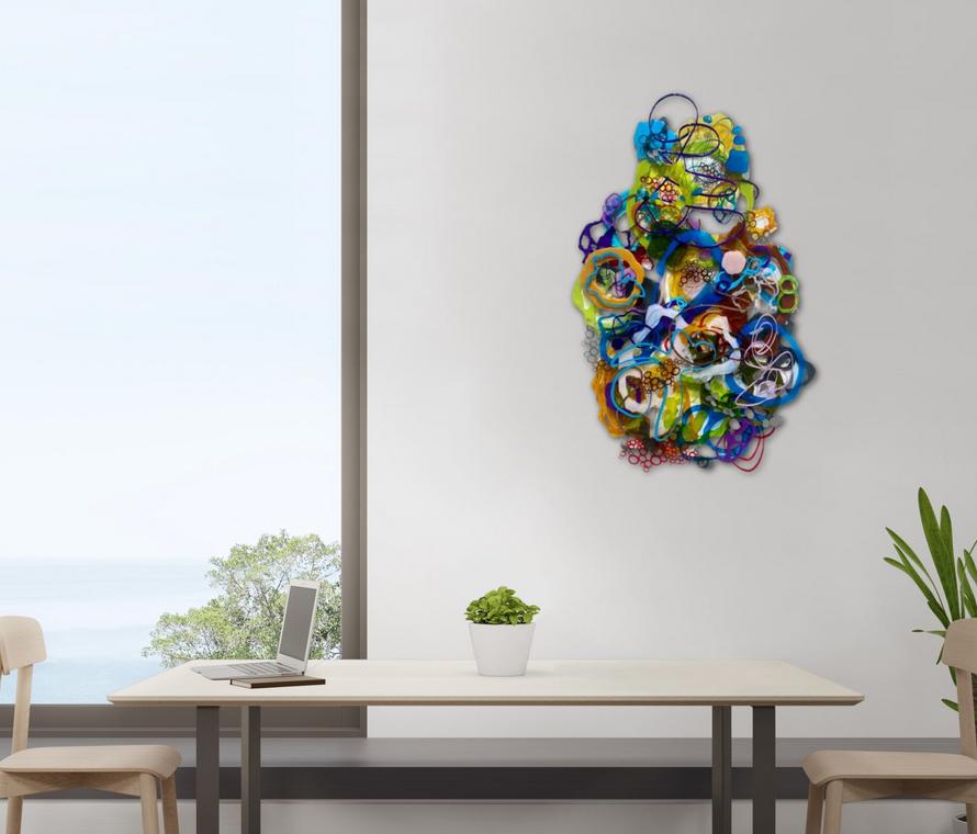 Mixed Media, acrylic, ink, epoxy. CO2 laser cut, plexiglass