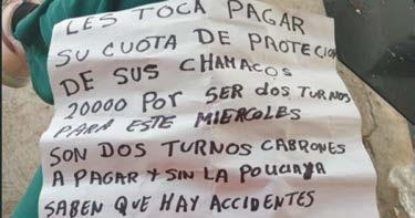 exige dinero a cambio de permitirles operar con normalidad. En ciertos casos, los agresores han arrojado bombas molotov contra instalaciones educativas como forma de presión, generando daños materiales y temor entre padres de familia y personal docente. La situación ha provocado que comunidades escolares opten por suspender actividades presenciales