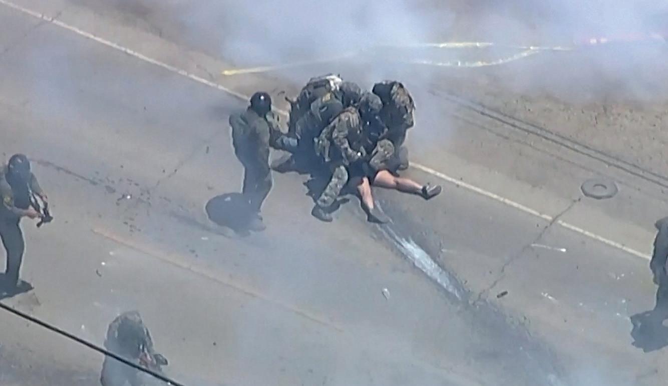 ciales mostraron cómo decenas de trabajadores corrieron por la plantación y se subieron al techo del cultivo para evitar su arresto.