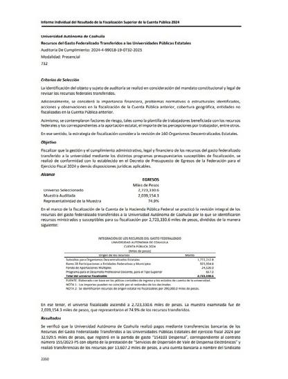 De acuerdo con la auditoría de cumplimiento 2024-4-99018-19-07322025, practicada a la Universidad Autónoma de Coahuila como parte de la revisión de los Recursos del Gasto Federalizado Transferidos a las Universidades Públicas Estatales, la observación derivó en cuatro pliegos de observaciones y una Promoción del Ejercicio de la Facultad de Comprobación Fiscal. La Auditoría Superior de la Federación precisó que las inconsistencias se detectaron en recursos correspondientes al ejercicio