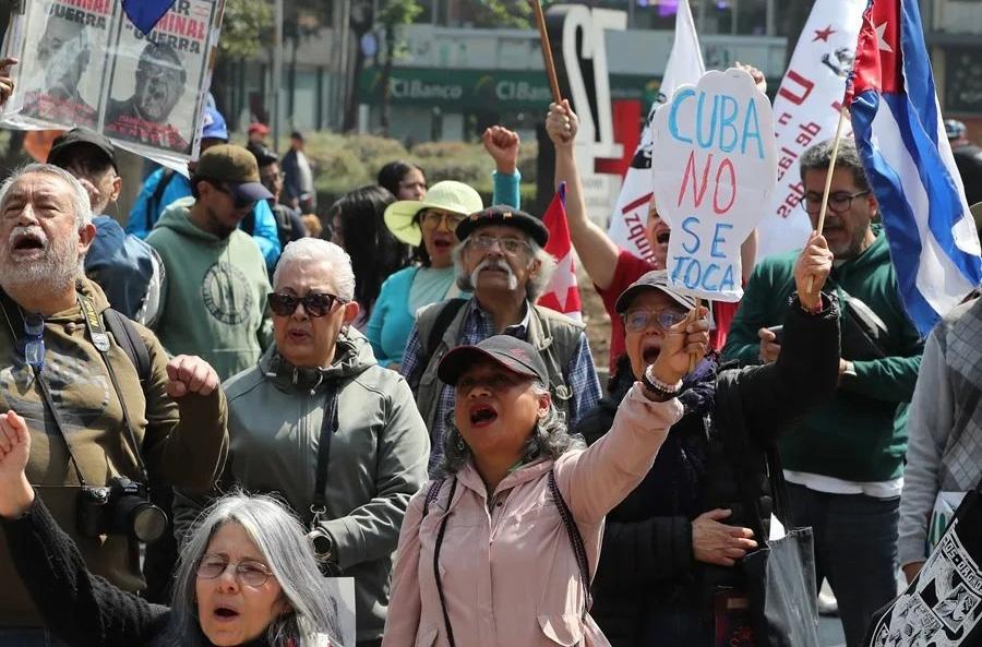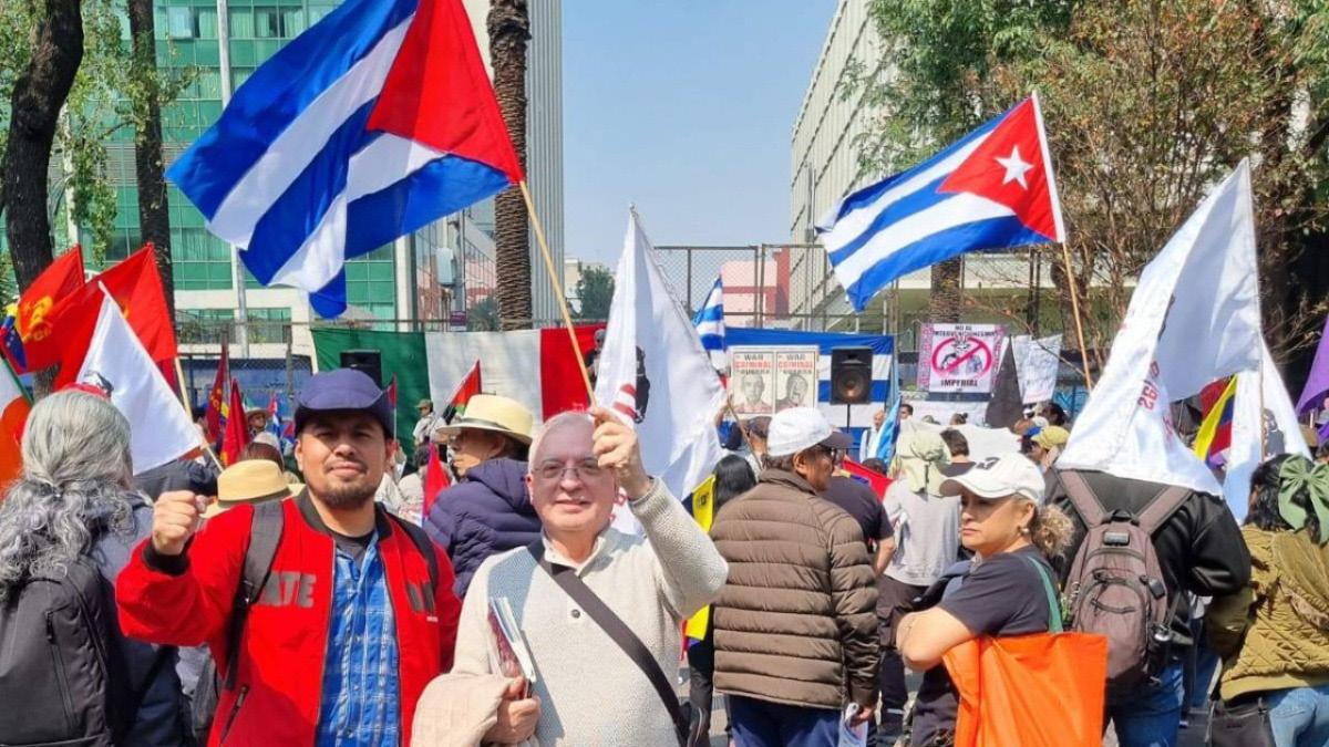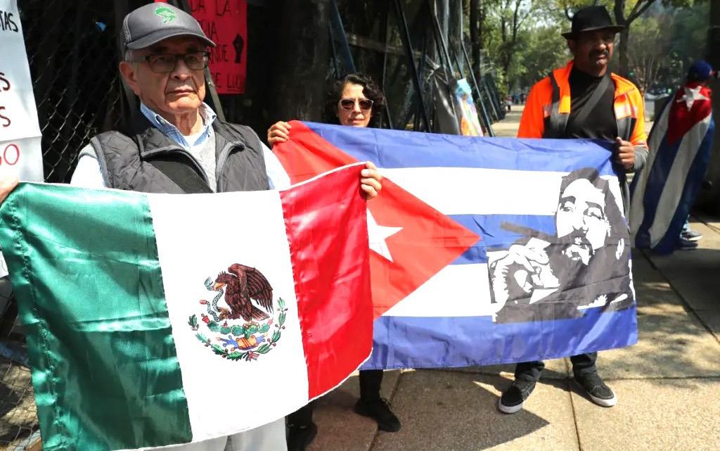 Cientos de manifestantes se congregaron el domingo a las afueras de la antigua sede de la Embajada de Estados Unidos en México, en la capital mexicana, para protestar contra el endurecimiento de las restricciones desde Washington hacia Cuba y pedir que el país mantenga su apoyo a la isla ante la presión del Gobierno estadounidense.