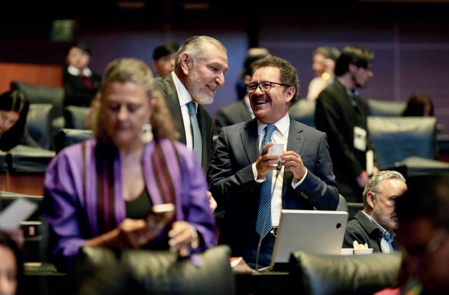 En defensa de Adán Augusto López, el senador morenista Ignacio Mier Velazco manifestó su respaldo al liderazgo del coordinador parlamentario. “Tenemos un coordinador. Es un coordinador consistente, sólido, fuerte, que tiene el respaldo de las y los senadores”, expresó Mier. Añadió que el grupo parlamentario de Morena mantiene cohesión en torno a su dirigencia: “Las voces de nosotros, las diputadas, diputados, las y los senadores de Morena, es respaldar a nuestros coordinadores