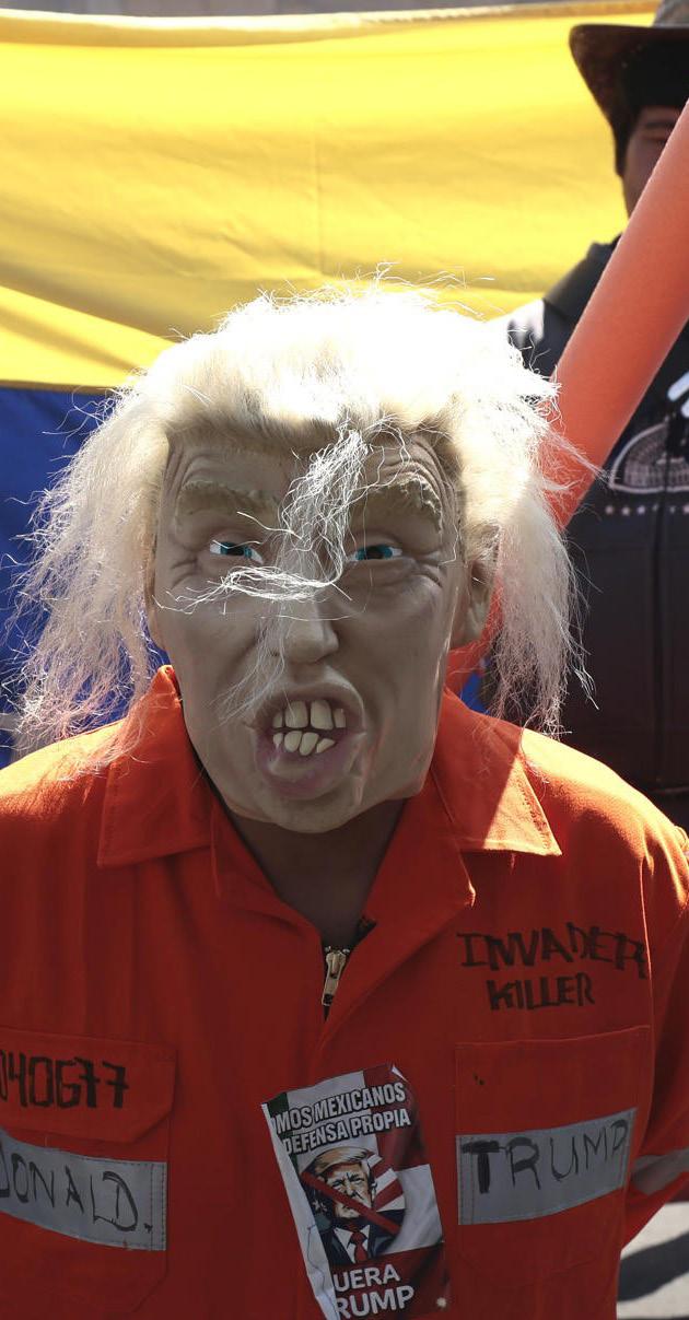 Durante la manifestación, una persona vestida con uniforme carcelario y una máscara con el rostro del presidente estadounidense fue presentada de forma simbólica como detenido, en protesta por lo que consideraron el secuestro del líder venezolano.
