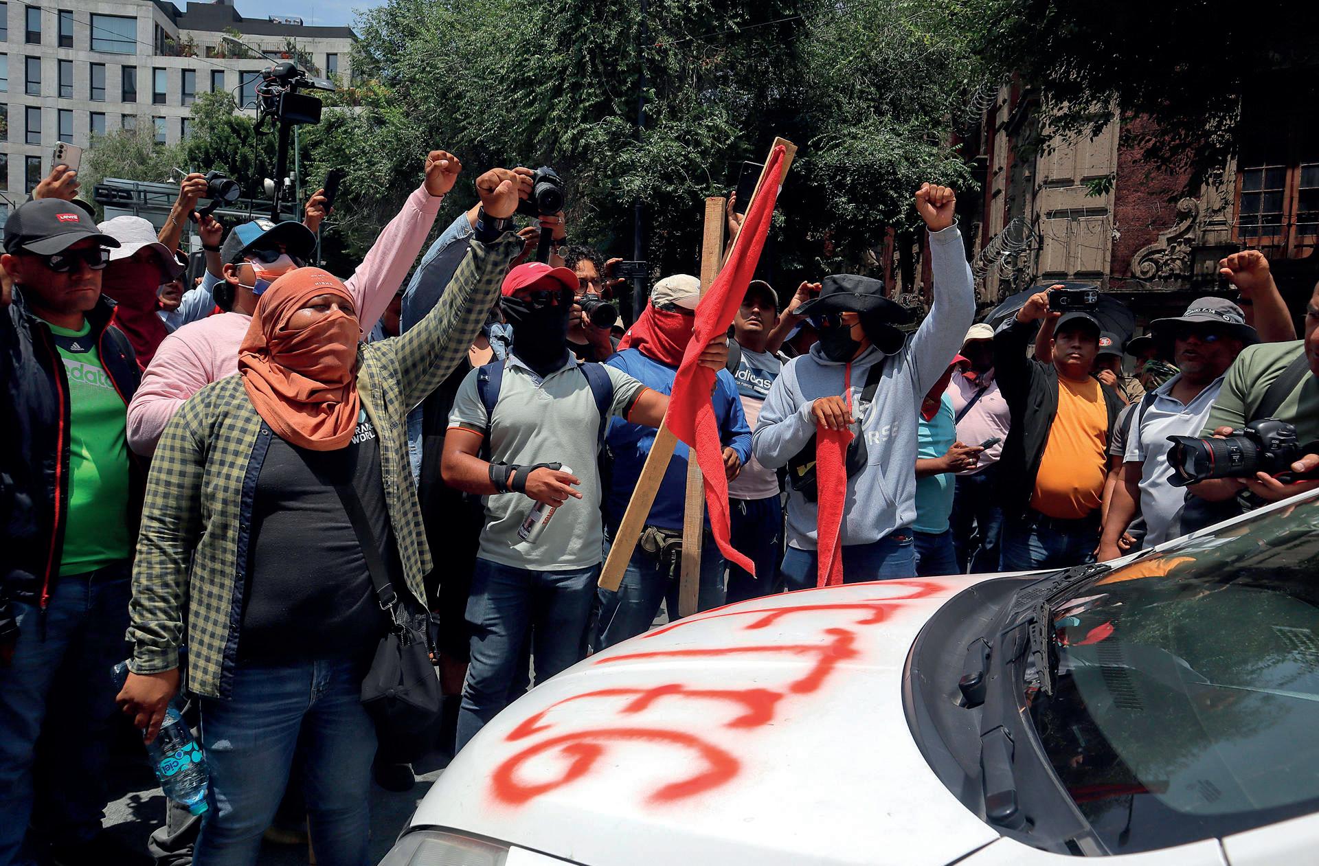 “¡No son maestros! ¡No son maestros!”, aseguraban; mientras que otros gritaban: ‘¡Claudia, mentiste, por eso no saliste!’, en referencia a que la presidenta mexicana, Claudia Sheinbaum, ha rechazado reunirse con ellos.