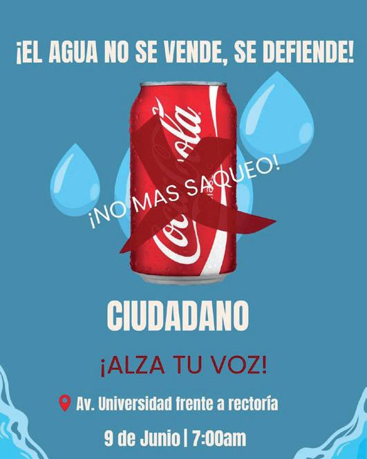 La publicación que ha sido varias veces compartida, expresa descontento por la sobreexplotación de los acuíferos y exigen justicia hídrica: “Mientras nuestras familias viven sin agua en sus casas, la planta embotelladora de Coca-Cola