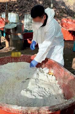 Las acciones derivaron en la ejecución de cinco órdenes de cateo, en cuyo cumplimiento se localizaron aproximadamente 42.24 toneladas de metanfetamina, además de 44 tambos con 200 litros de metilamina cada uno, 8,800 litros de precursores químicos y diverso material empleado para la elabora-