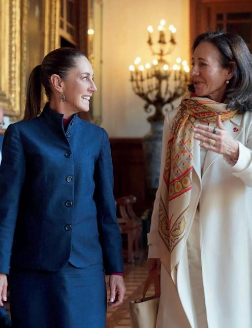 La presidente Claudia Sheinbaum se reunió el lunes en el Palacio Nacional con Ana Botín, presidente de Banco Santander con quien conversó respecto a las inversiones que el importante grupo financiero llevará a cabo en el país.
