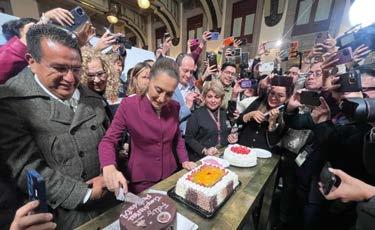 La presidenta Claudia Sheinbaum celebró el martes su cumpleaños número 63 durante su conferencia matutina en Palacio Nacional, en lo que constituyó su primer festejo como titular del Poder Ejecutivo. El evento se llevó a cabo en el Salón de Tesorería, donde fue recibida con ‘Las Mañanitas’ por reporteros acreditados y trabajadores del gobierno federal.