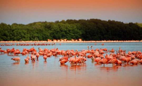 Las poco profundas y salobres aguas de las reservas naturales en Yucatán, nuevamente se cubren de rosa