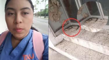 La grabación muestra al reptil inmóvil, sin signos de agresividad, sobre un escalón. La joven logró retirarse del lugar sin incidentes.
