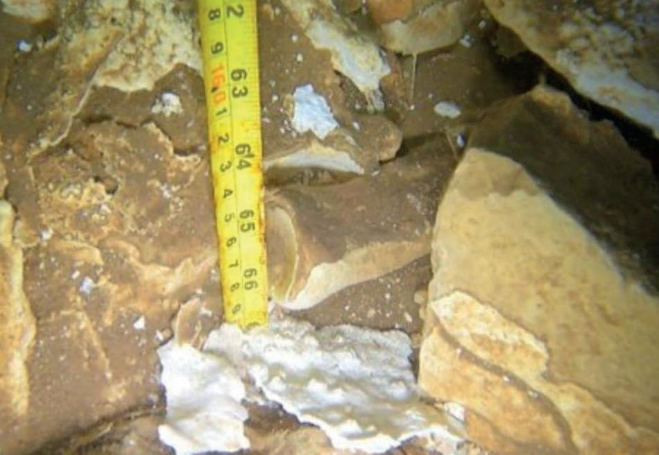 A unos 22 metros de profundidad, tomaron medidas del lugar y los restos óseos para enviar la información al paleontólogo Jerónimo Avilés Olguín, quien identificó que los huesos pertenecen a especies extintas.