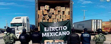 En un comunicado conjunto, la Agencia de Investigación Criminal (AIC) de la Fiscalía General de la República (FGR) y las secretarías de Seguridad y Protección Ciudadana (SSPC), de la Defensa Nacional (Defensa), de Marina (Semar) y Guardia Nacional (GN), informaron que agentes detuvieron a un hombre que transportaba 32 kilos de fentanilo ocultos en el interior de un tráiler cargado con cajas de nopales.