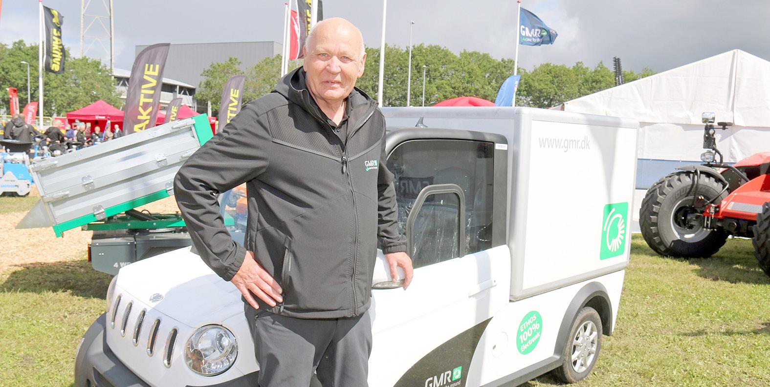 Salgskonsulent Jens Elkrog ved den 100 procent elektriske arbejdsbil, som er rullet ind i produktsortimentet hos GMR Maskiner.
