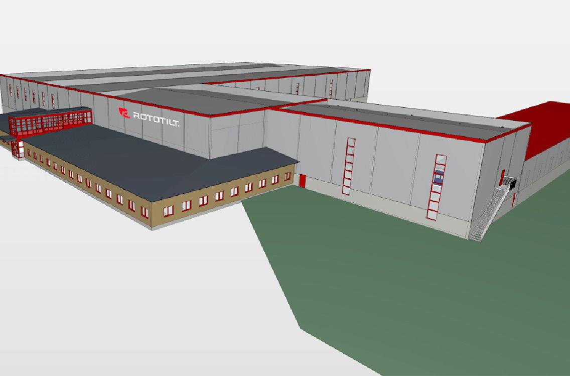 Det nye robotsvejseanlæg er med tilkobling af håndteringsrobotter og svejserobotter. Til at huse anlægget har Rototilt bygget 1080 kvadratmeter til fabriksanlægget i Vindeln. Rototilts produktionsanlæg drives af fossilfri energi, og den udvidede fabrik er konstrueret med et avanceret energigenvindingssystem. Varmen fra svejseprocessen genvindes via ventilationssystemet, hvilket reducerer energiforbruget og klimaaftrykket. Fabrikkens primære varmekilde er fjernvarme, som kommer fra lokalt biobrændsel.