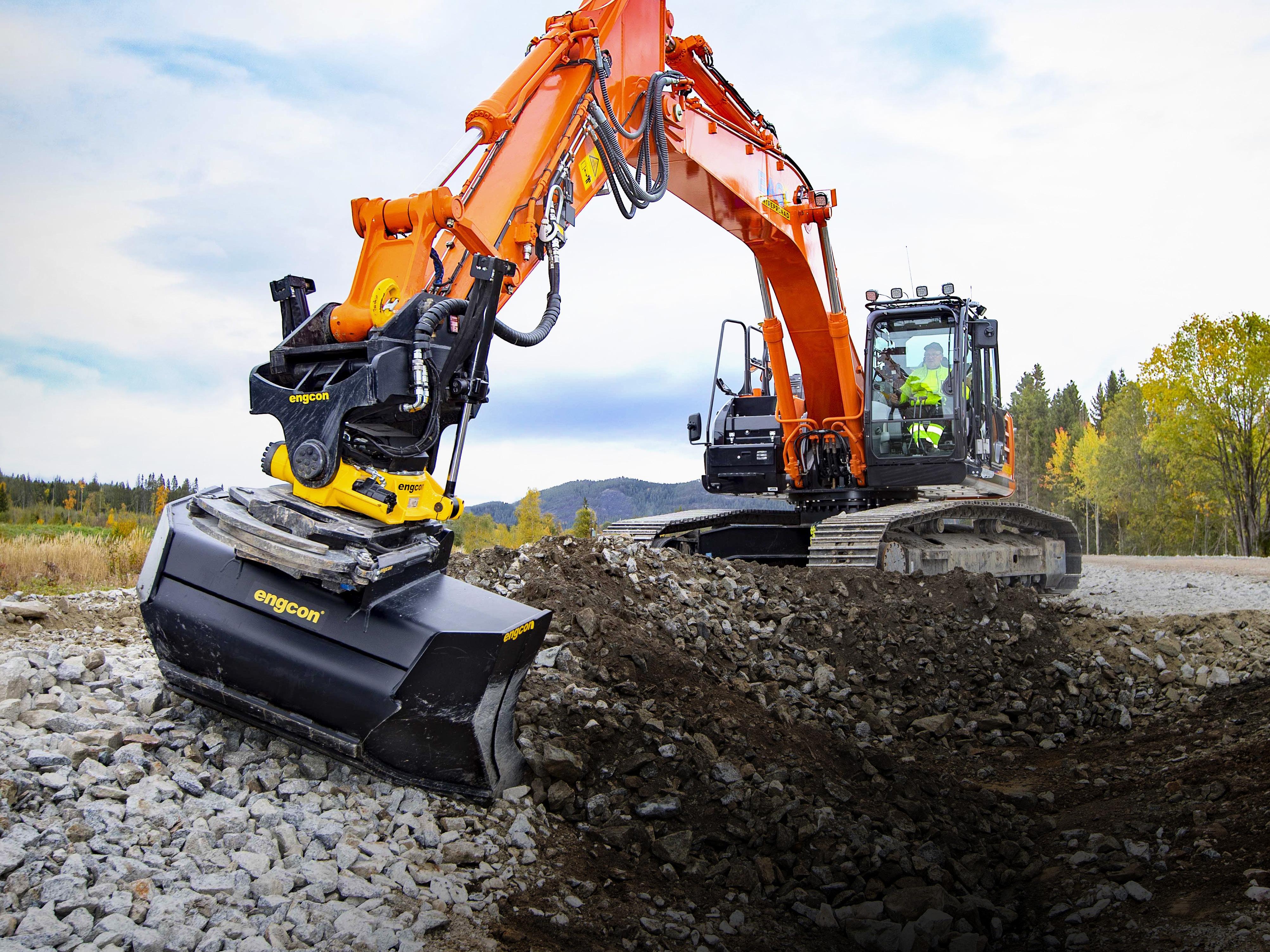 "Vi kalder det tiltrotatoreffekten", forklarer Ekström. ”Vi har altid vidst, at der er stor forskel på at arbejde uden og med en tiltrotator. Ikke alene skal der bruges færre maskiner, men jobbet