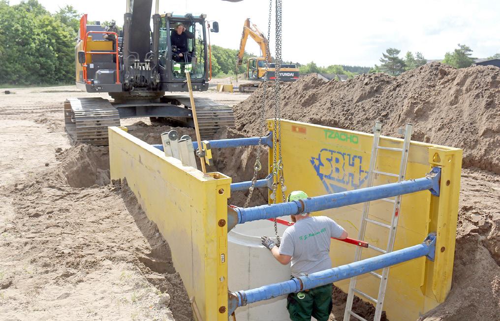 Når der arbejdes i dybden, foregår det naturligvis med gravekassse på Mercantec Ulfborg Kjærgaard.