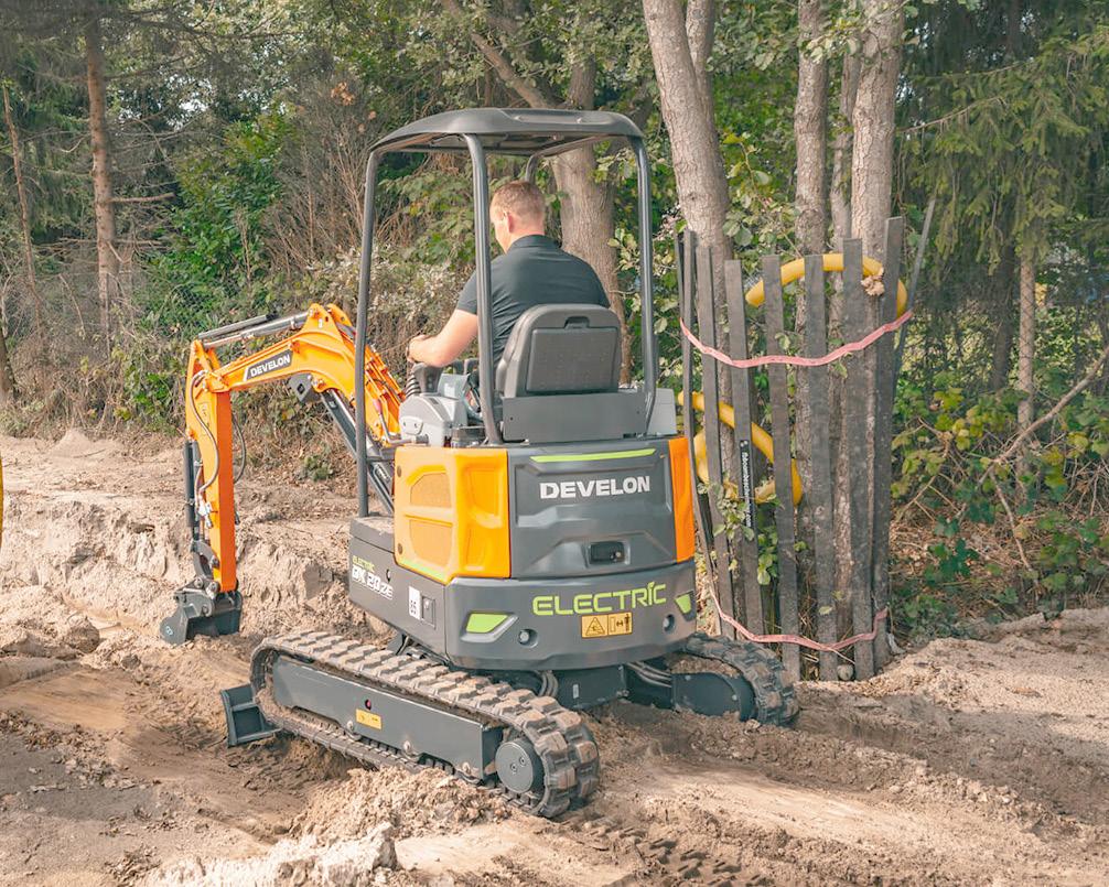 To tons Devlon minigraver uden røg og støj. Den elektriske maskine er blandt andet et oplagt valg til arbejde inden døre.