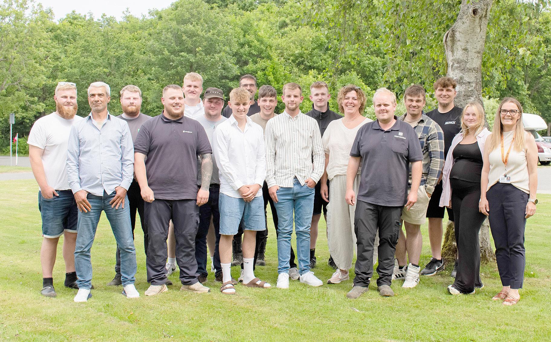 hold af nyuddannede maskinførere på Mercantec Ulfborg Kjærgaard med faglærerne Anders Byskov og Casper Faaborg samt Ulfborg Kjærgaards centerleder Christine Thorhauge.