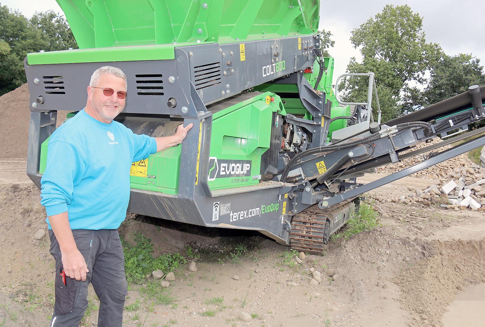 Kaj Bundgaard på materialepladsen bag ved Byggerigets domicil i Jegerup, hvor EvoQuip Colt 800 har sin plads.