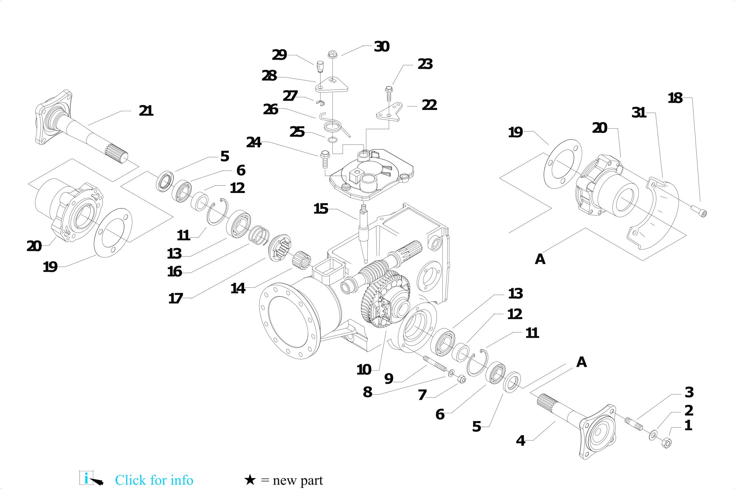 03/02/2023 Page 27 / 49 Pos. Id Q.ty Description Note 1 31211100 NUT M10 2 31423105 SPRING WASHER 10,5 3 31312102 STUD BOLT M10X40X24X12 4 52448187N AXLE SHAFT 5 38213002 OIL SEAL 30X40X7 6 37111253 BEARING 6005 (25X47X12) 7 31241080 HEXAGON SELFLOCK NUT M8 8 31423084 SPRING WASHER 8,4 9 31312080 STUD BOLT M8X46X20X12 10 59048181 DIFFERENTIAL GEAR 11 35111047 SEEGER RING I 47 DIN 472 12 56148184 RING 13 37111250 BEARING 14 56448183 SPACER 15 56443871 ROD 16 58043874 SPRING 17 56448196 COUPLING 18 31152085 SCREW TCEI M8X25 UNI 5931 19 58043855 GASKET 20 53243851N HUB 21 52448188N AXLE SHAFT 22 56157274Z 56157274Z 23 31112167 SCREW TE C/F M8X30 DIN 6921 8G 24 31112166 SCREW TE C/F M8X25 DIN 6921 8G 25 38111400 O-RING (14,00X1,78) 26 58043881N SPRING 27 35211060 SEEGER RING E 6 UNI 7434 28 56156219Z LEVER 29 56156828Z STOP