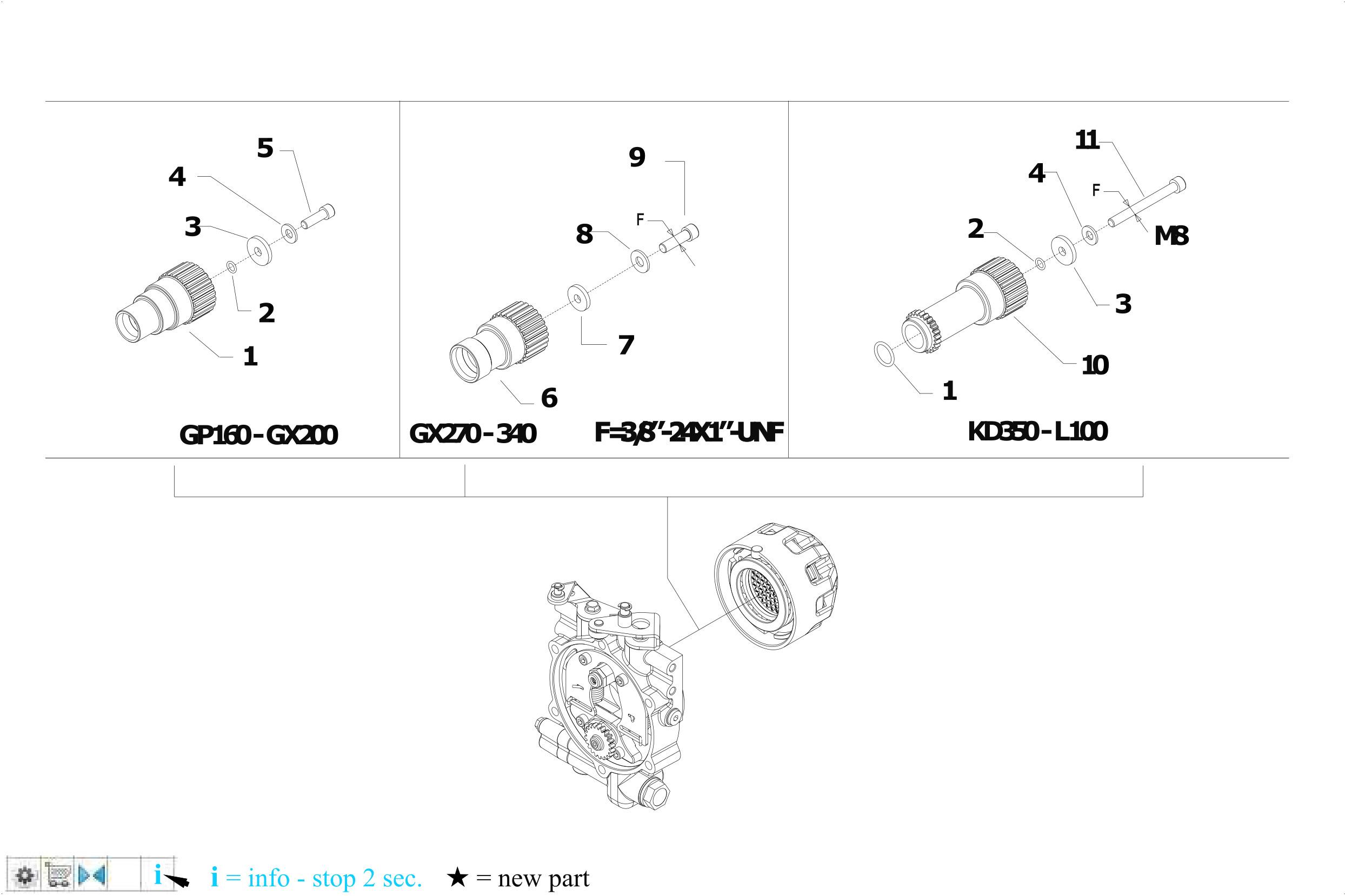 03/02/2023 Page 18 / 49 Pos. Id Q.ty Description Note 1 52456234 HUB Q19 2 38110675 O-RING 106 (6,75X1,78) 3 56156288Z SPECIAL WASHER SP.4 4 31421083 WASHER 5 31100023 SCREW 5/16-24 X 1 UNF 8G 6 52456233 HUB Q25 7 56156743 WASHER 30X11.5X3 GX270 7 561C0421 WASHER GX340 8 31421101 WASHER 10 DIN 679 GX340 8 31421130 WASHER GX270 9 31100032 SCREW TCCEI 7/16-20 X 1-1/2 GX270 9 31100033 SCREW TCCEI 3/8-24 X 1-1/2 GX340 10 52456245 HUB 11 31152090 SCREW TCEI M8x80 UNI5931