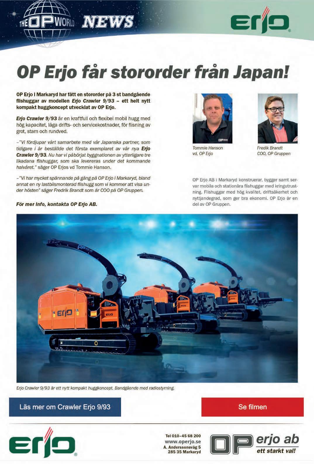 28Verko Maskinkontakt AB Gustaf V:s Väg 11, 429 43 SÄRÖ www.maskinkontakt.se info@maskinkontakt.se Tel 031-68 00 05 Försäljning: David Johansson david@maskinkontakt.se Ansvarig utgivare: Björn Johansson bj@maskinkontakt.se Redaktion/annonsmaterial: Tel 031-68 00 02 abs@maskinkontakt.se Copyright. Eftertryck av annonser och annat material förbjudes utan medgivande. Maskinkontakt. Kommande nummer: Ur innehållet Maskinkontakt nr 10 11/22 9/11 -22 16/11 -22 12/22 7/12 -22 14/12 -22 Reservdelar, Utrustning, Underhåll 67 Lyft, Byggmaskiner och -utrustning 73 Transportsektorn 75 Begagnat, Transportteknik, Flak, Påbyggnader, Tjänster och transporter NÄTREGISTRET 80 MASKINVISNINGAR MÄSSOR etc 84 Deadline UtgivningNr