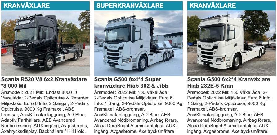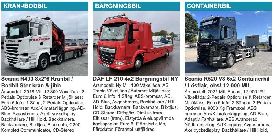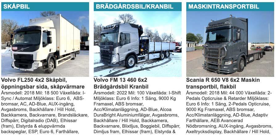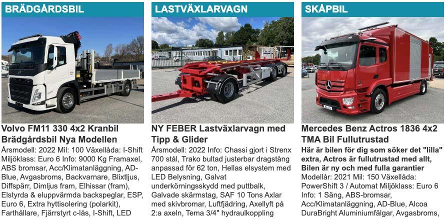 35 50 www.rogersbil.se TRANSPORT BEGAGNAT LYFTSEKTORN TRANSPORTTEKNIK VVAB MASKIN & TEKNIK AB Tel 031-51 90 30 www.vvabmaskinteknik.se www.rotabest.se MAGNETBORRMASKINER, SÅGAR, FASMASKINER mm för metallbearbetning Vi säljer & köper begagnade kranar! Cotac Oy, Finland www.crane.fi Tel: + 358 400 699 469 www.dinacon.se www.nordcontainer.se KOLSTAD Försäljning AB Tel: 0705-62 30 70 www.kolstads.com Efterfordon speciellt inom tipp, bilpåbyggnadertrailers-kärror samt släp Tel 0455-575 50 www.karlskronabilcenter.se BEG. LASTBILAR Tel 010 - 497 19 19 www.biliacenter.se Arrangör: SCOP AB 08-585 700 46 www.demcon.se 24 - 25 nov 2022 www.loadupnorth.se BODEN 25 - 27 aug 2022 FLER MÄSSOR PÅ www.maskinkontakt.se 26-27 maj 2023 www.maskinexpo.se skaneslap.se Tel 0415-52 90 60 0454-841 64 www.k-vagnen.com Maskin & Specialtransporter AB Tel 08-734 96 00 www.loffes.se VERKTYG MÄSSOR Tel 0226 – 662 50 www.sjogrenslastvagnar.se RICHARDS RESERVDELAR AB Tel 018-345 567 www.richardsreservdelar.se Original-reservdelar och tillbehör (nya & begagnade) Bl a till: ATILA/ATLAS, CASE/POCLAIN, CAT, DEUTZ, HANOMAG, HITACHI, HYMAC, JCB, KOBELCO, KOMATSU, LIEBHERR, O&K, PUTZMEISTER, YANMAR, VIBROMAX, TAKE JOB, ZF m m RESERVDELAR, UNDERHÅLL Tel 0492-130 42 www.nhparts.com ÄLMEBODA MASKINSERVICE AB Tel 0477-548 00 www.almeboda-maskinservice.se www.stanlyplat.se Specialisten på rostfritt Tel 040-680 29 60 Tel 0554-136 00 www.hamekab.se Ångturbiner • Industriella vibratorer Luftfilter • Bränslefilter Tel 08 764 66 10 • www.sveadiesel.se Å www.batrading.se SPECIALISTEN PÅ PUMPAR OCH MOTORER Tel 08-623 07 30 www.rpfhydraulic.se www.jbtrailer.se www jbtrailer se www.waldung.se ld www.tb-trailer.se Tel 031 728 59 00 T l Befästningssystem för järnväg Tel 0650 - 165 05 www.pandrol.com JÄRNVÄGSMASKINER MASKINHALLAR Tel 070 - 591 39 85 Industrihallar, Maskinhallar, Entreprenadhallar www.backensstal.se RINDAB AB Tel 08 - 747 24 80 www.rindab.se BELYSNING www.bolding.as/se