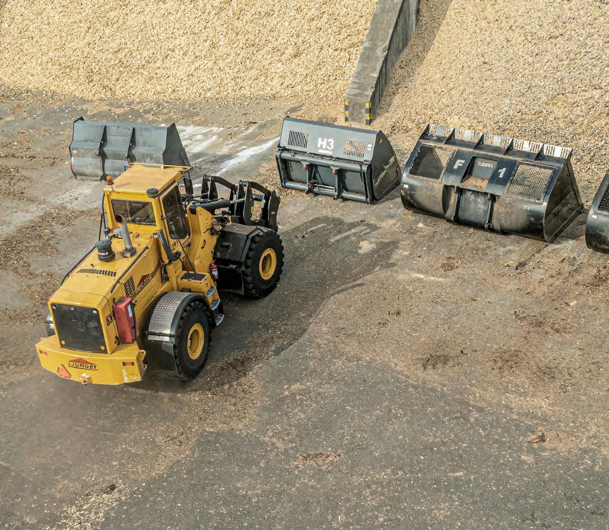Södra Cell i Värö hanterar enkelt, effektivt och säkert alla skopbyten inifrån hytten på sin OQL-utrustade lastmaskin.