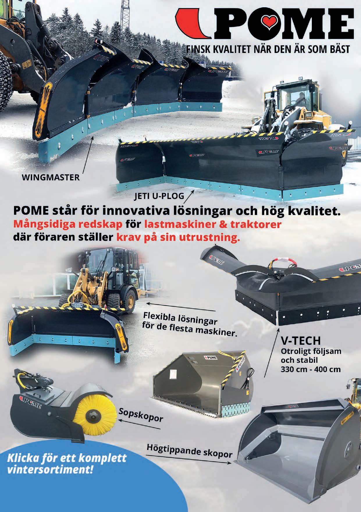 park och grönytEmaskinEr Avancerad utrustning för väg, park & grönyta www.camro.se • 021-35 22 00 www.swedishagromachinery.se VELOG GÅNGKRATTA Tel 070-673 16 03 www.wmaskin.nu För professionell markvård och lantbruk Tel 013 - 25 36 00 www.nellemannmachinery.se Tel 010 - 456 80 00 www.sitechsverige.com Vågsystem - Mjukvaror - Maskinstyrning - Mätteknik VågsystEm, styrning, mät Styrsystem & produkter för mobila maskiner www.excidor.se SPECIALISERADE PÅ SYSTEM OCH SENSORER FÖR TUNGA MILJÖER. "Bergborrningsinstrument är vår grej" www.lundaman.se Tillverkning av LASTVÅGAR i över 28 år blinken.eu Tel 054 21 60 60 VÄLKOMMEN TILL VÅR VÄRLD AV ENTREPRENADMASKINER Tel 046 25 92 00 www.sodhaak.se POME för entreprenörer med krav www.snöblad.se MTT utrustning för VintErVägar LAMETAL OY • KASKENVIERTÄJÄNTIE 2 SNÖPLOGAR • BORSTAR • SKOPOR STARK, STARKARE, STARKAST! Redskap för snöröjning & vägunderhåll! EM SERVICE AB Tel 0413-304 20 www.emservice.se arbEtEn och sErVicE Tel 040-43 76 96 www.boanders.se FÄRMARTANKEN AB Tel 0321-317 07 www.fherms.se 031-41 30 70 www.bvm.se FLÄKTAR www.verktygshopen.se kringutrustning www.racoon.se Tel: 08-549 530 00 Allt från mobila bränsletankar till kompletta tankanläggningar www.mpp.se Larvbandssystem - Wolverex Redskap Skopor - Reservdelar - Slitdelar www.haggblom.fi EntrEprEnad • maskinEr • skopor • rEdskap • kringutrustning Kundanpassade maskiner för yrkesfolk +46 (0) 411–139 50 I ww ystamaskiner.se Tel: 0411-139 50 www.ystamaskiner.se Maskiner för yrkesfolk inom entreprenad- och lantbruk. Kundanpassade maskiner för yrkesfolk Tel: 0411-139 50 www.ystamaskiner.se Maskiner för yrkesfolk inom entreprenad- och lantbruk. Tel 036 – 30 75 00 www.gripenwheels.se däck bränslEhantEring Allt från mobila bränsletankar till kompletta tankanläggningar www.mpp.se 070 303 31 89 www.treman.se www.l5navigation.se