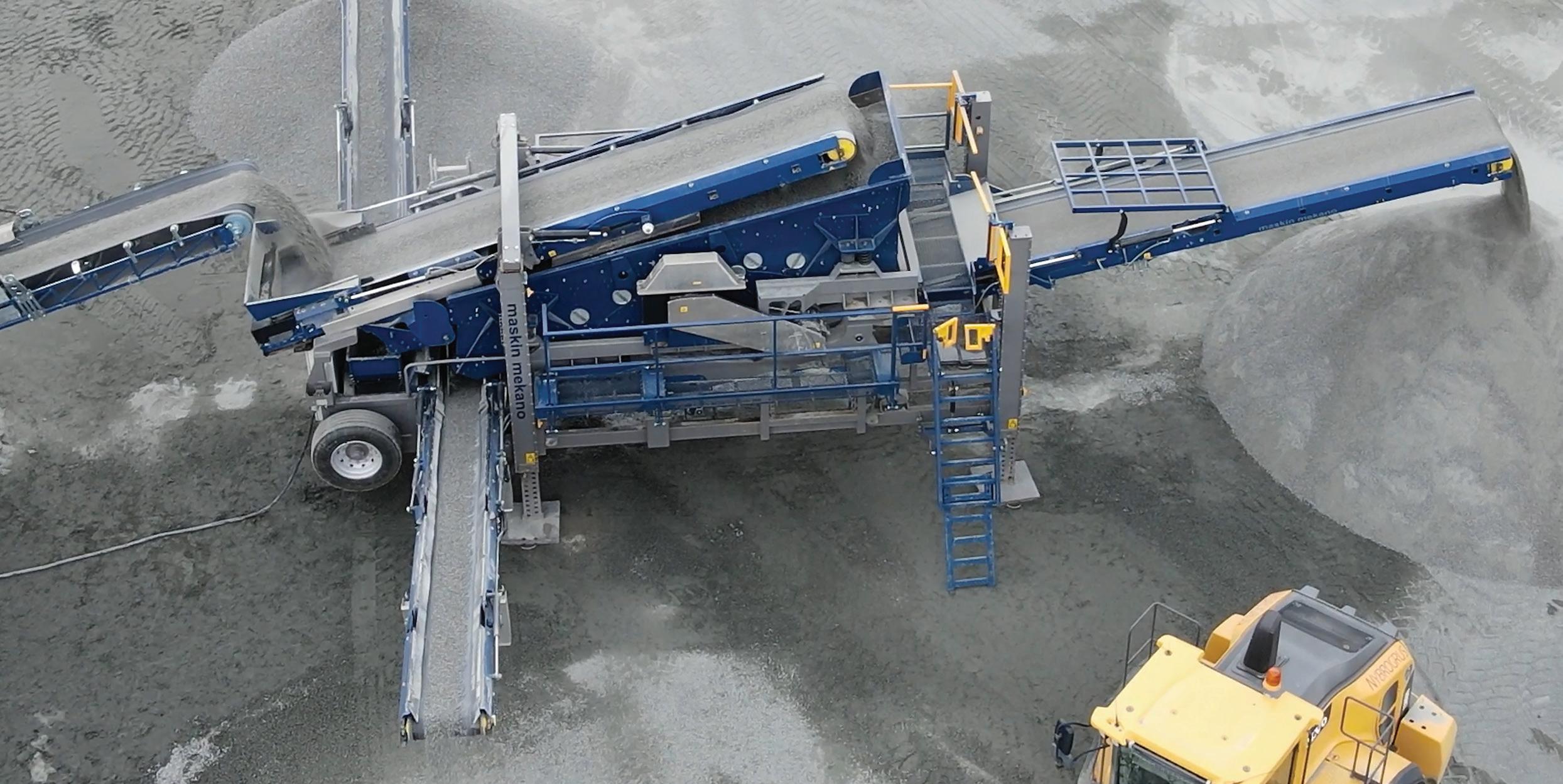 Swedish family owned company Maskin Mekano presents a new screener generation to meet the current demands on higher capacity, better screening accuracy, lower operating costs, less noise impact, smaller CO2 footprint and safer work environment. The new 1500-range consists of two deck screener SH 1502 and three deck screener SH 1503, they are unique mobile units, in production mode very similar to stationary screens thanks to the high jacking legs.