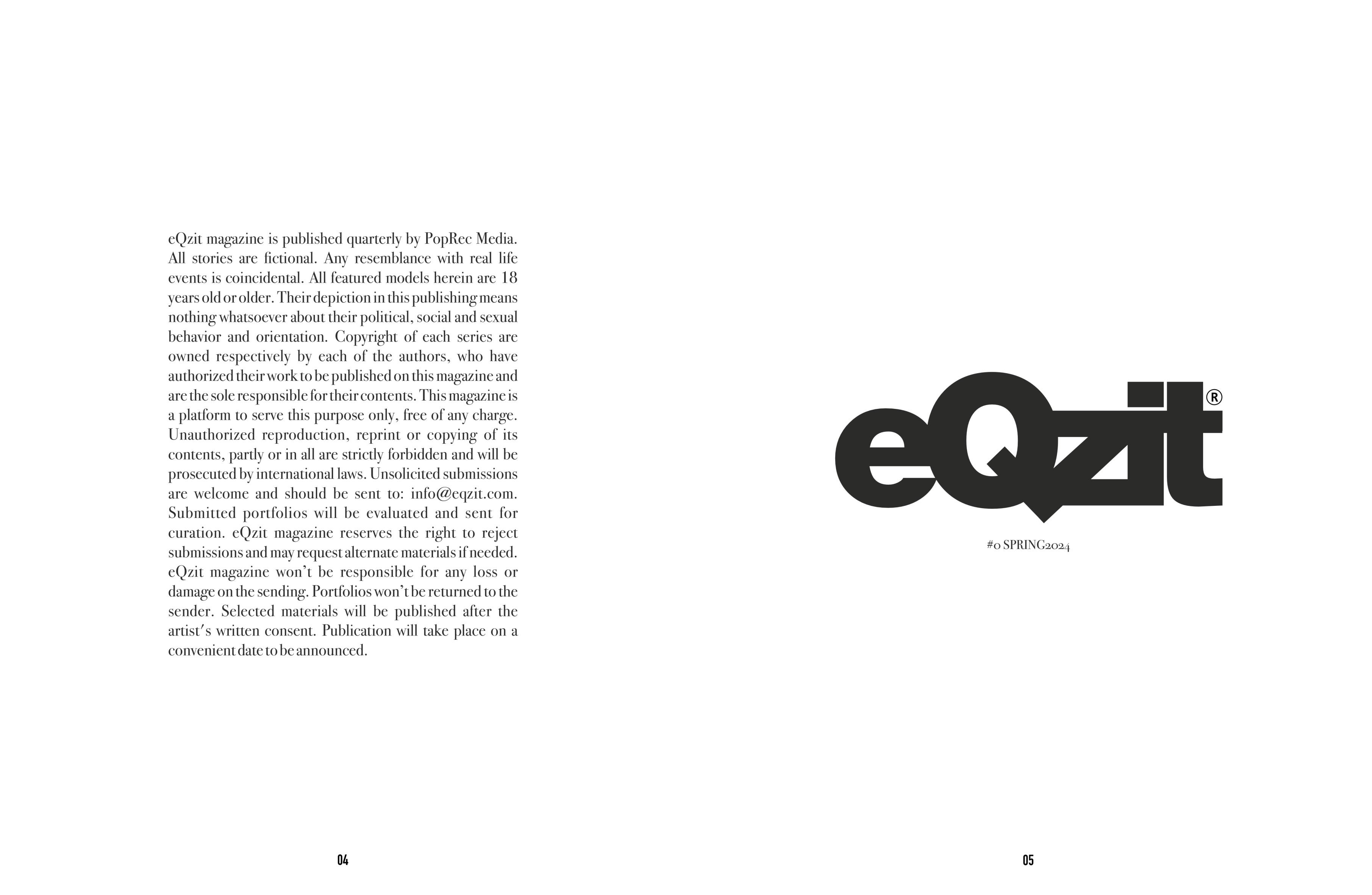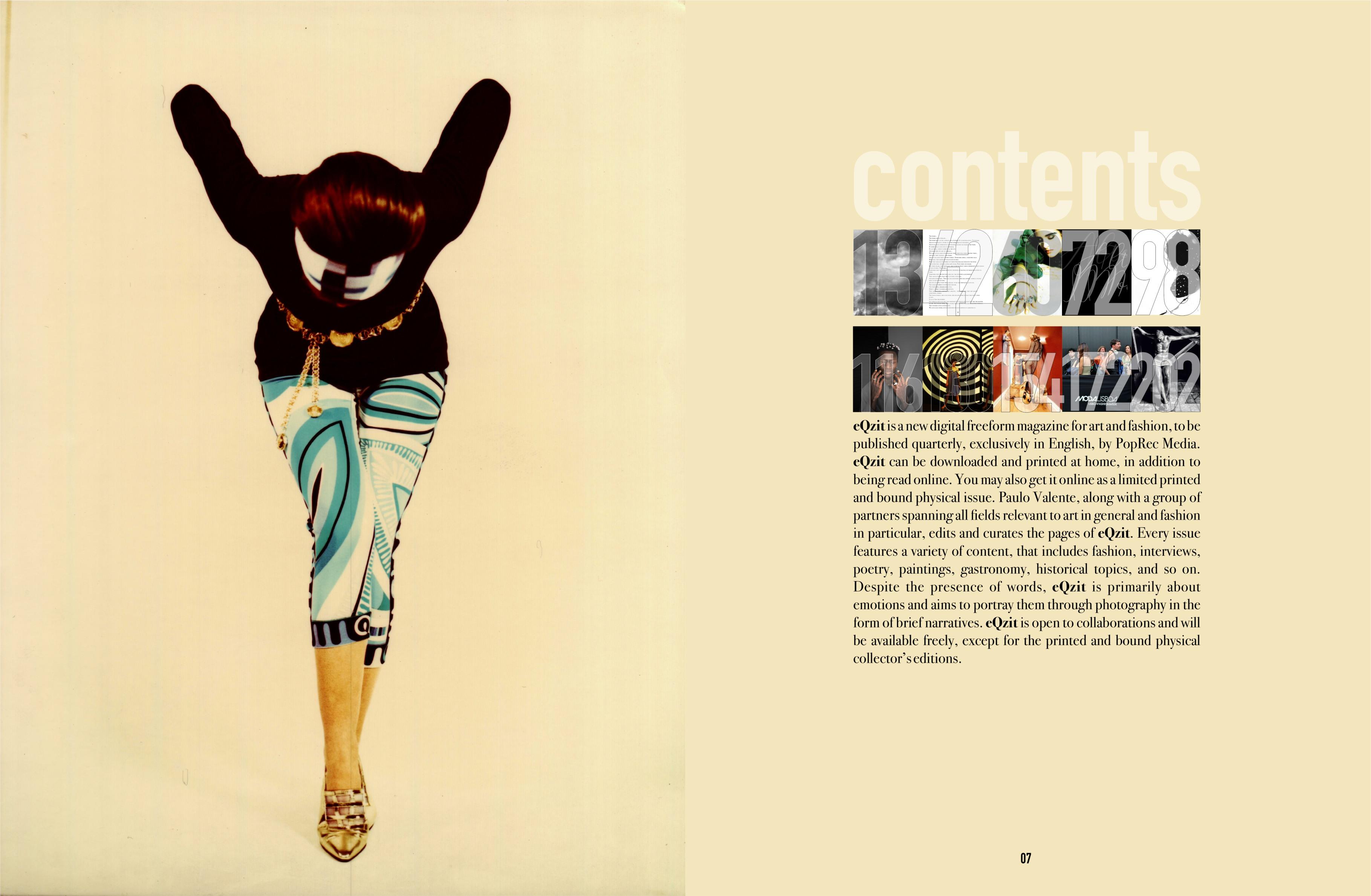 eQzit is a new digital freeform magazine for art and fashion, to be published quarterly, exclusively in English, by PopRec Media.